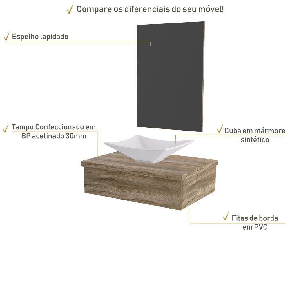 Conjunto Bancada C-cuba L38 E Espelheira Metrópole 601 Branco Chess Carvalho