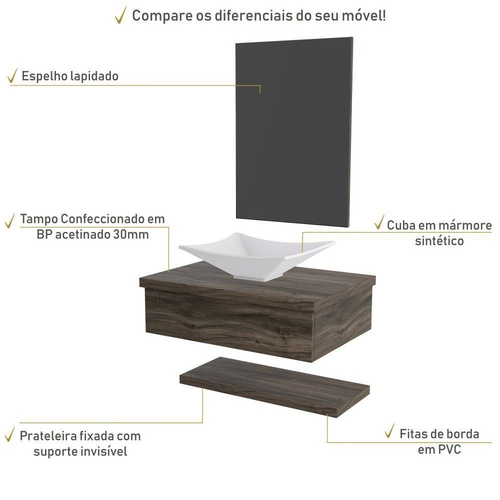 Conjunto Bancada C-cuba L38, Prateleira E Espelheira Metrópole 606 Carvalho Carvalho Dark