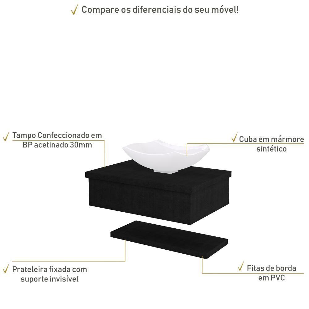 Conjunto Bancada C-cuba L42 E Prateleira Metrópole 605 Nogal Preto ônix