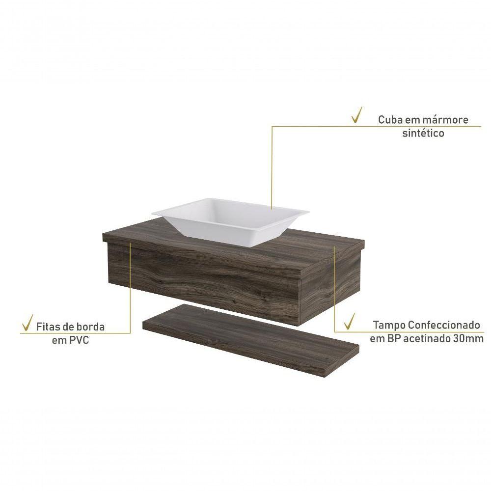 Conjunto Bancada C/cuba Messina E Prateleira Metrópole 805 Carvalho Carvalho DarkSobre o ProdutoConjunto Bancada C/Cuba Messina e Prateleira Metrópole 805 Branco ChessDescrição do Produto:O Conjunto (Bancada + Cuba + Prateleira) Metrópole KTME805 é um produto compacto de design simples e moderno, projetado para pequenos espaços, perfeito para fazer parte da decoração do seu lavabo ou banheiro. Conta com uma cuba de apoio e uma prateleira com pinos invisíveis, além do suporte linha Metrópole é uma coleção de móveis modernos e com inúmeras possibilidades de composições, combinando design contemporâneo e muita funcionalidade. Diversas possibilidades de cores e modelos de cubas formam uma solução perfeita para as mais opções de decoração e projetos em ambientes de banheiro. É você quem decide!!!Itens Inclusos:1 Conjunto Bancada C/Cuba e PrateleiraDimensões dos Produtos:Bancada: 80 x 43 x 19 cmCuba 44,5 x 35 x 10 cmInformações Logísticas (Comp. X Prof. X Alt.) 83 x 47 x 26 cm - Peso: 18,69 KgPeso Total: 18,69 KgObservações:Não acompanha acessórios decorativos. Imagens meramente ilustrativas.Informações Técnicas / Características:- Cor do Produto: Branco Chess- Cor do Predominante: Branco- Marca: Compace- Modelo: KTME805- Linha: Metrópole- Material: Mdp - Acabamento: Perffect Acetinado- Escala de Brilho: Fosco- Fita de Borda: Pvc - Possui Gavetas: Não - Material do Puxador: Alumínio- Possui Prateleiras: 1- Peso Máximo por Prateleira: 02 kg- Possui Pés: Não, suspenso - Possui Espelho: Não - Acompanha Cuba / Lavatório: Sim, de Mármore Sintético- Furação para Cuba / Lavatório: Não- Tipo da Cuba: Apoio- Cor da Cuba: Branca- Suporta Até (kg): 12 kg - Peso Lí.: 17,62Kg- Recomendações de Uso, Manutenção e Limpeza: Para a limpeza, utilize flanela seca ou pano macio levemente umedecido em água. Utilize um pano seco em seguida. Evite com produtos químicos (solventes, thinner, acetona, etc) e não utilize nenhum tipo de esponja de aço.- Necessita de Montagem: Sim / Acompanha Manual de Montagem- Complexidade da Montagem: Média: pode ser montado por mais de uma pessoa e/ou necessite de maior conhecimento para montagem.- Garantia: 6 meses- Outras Características: Montagem ível, o suporte toalheiro pode ser montado em qualquer um dos lados. Material: Mdp | Acabamento: Perffect Acetinado | Escala de Brilho: Fosco | Fita de Borda: Pvc | Fabricante: Compace | Comprimento: 80 | Largura: 42 | Limite de unidades por venda: É possível comprar até 1 unidade por venda. | Altura: 19 | Profundidade: 42 | Quantidade máxima de pedido: 1 | Preço tabelado: | Cor: Multicolorido | Certificação de teste externa: Não Aplicável | Baterias são necessárias?: false | Palavras-chave de Pesquisa: Não aplicável | Fonte de energia: Não aplicável | Principais Características do Produto 0: | Principais Características do Produto 1: | Dimensões do item P x L x A: | Is Fragile: | da peça: | Peso do item: | Exige montagem: | Componentes incluídos: | Principais Características do Produto 2: | Quantidade de itens: | do modelo: | de caixas: Cor: Carvalho Dark