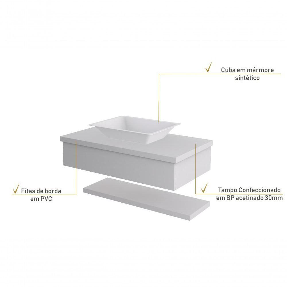 Conjunto Bancada C-cuba Messina E Prateleira Metrópole 805 Perffect Acetinado Branco Chess