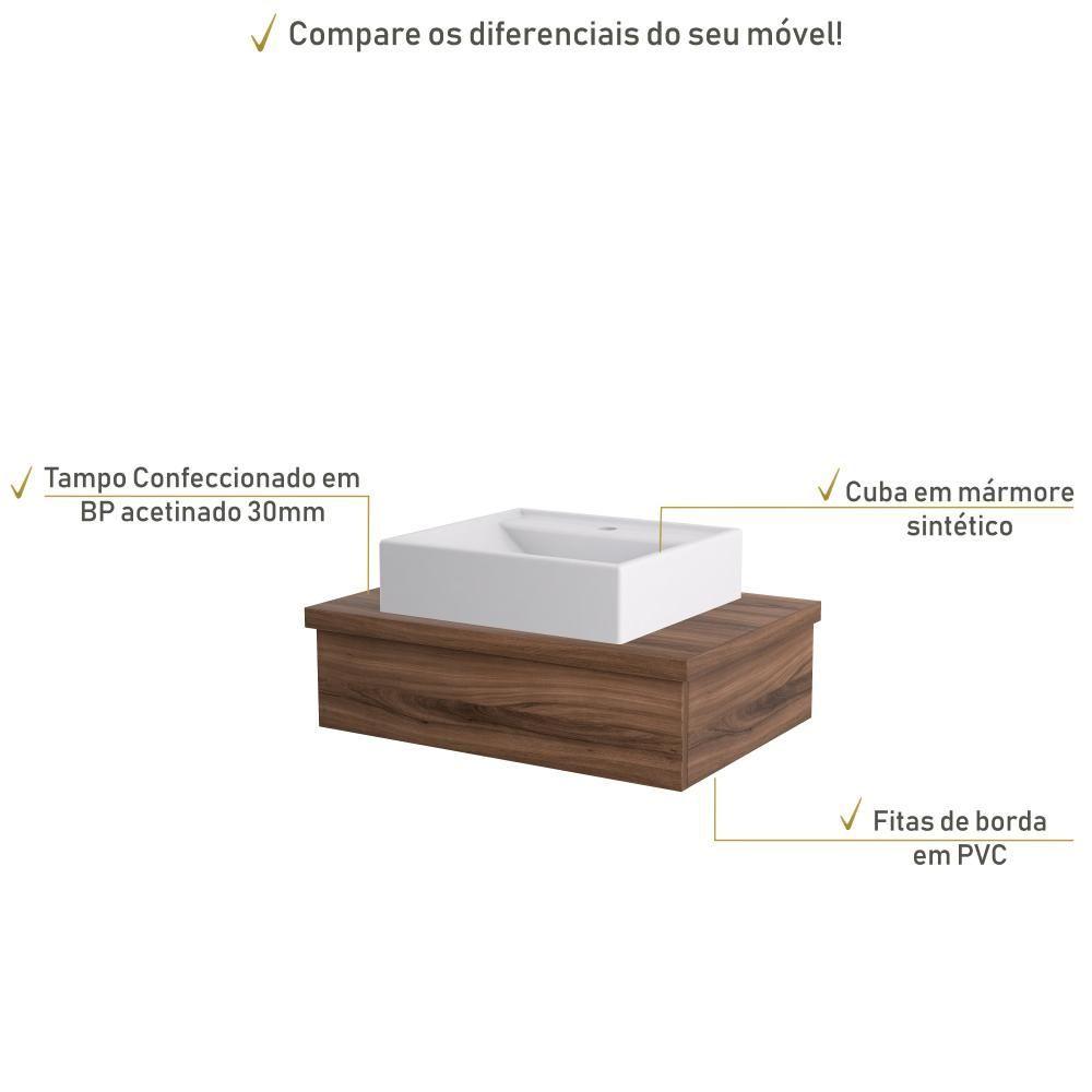 Conjunto Bancada C/cuba Q39 Metrópole 600 Carvalho Dark NogalSobre o ProdutoConjunto Bancada C/Cuba Q39 Metrópole 600 Branco ChessDescrição do Produto:O Conjunto (Bancada + Cuba) Metrópole KTME600 é um produto compacto de design simples e moderno, projetado para pequenos espaços, perfeito para fazer parte da decoração do seu lavabo ou banheiro. Conta com uma cuba de apoio, além do suporte linha Metrópole é uma coleção de móveis modernos e com inúmeras possibilidades de composições, combinando design contemporâneo e muita funcionalidade. Diversas possibilidades de cores e modelos de cubas formam uma solução perfeita para as mais opções de decoração e projetos em ambientes de banheiro. É você quem decide!!!Itens Inclusos:1 Conjunto Bancada C/CubaDimensões dos Produtos:Bancada: 60 x 43 x 19 cmCuba 40 x 37,5 x 10 cmInformações Logísticas (Comp. X Prof. X Alt.) 63 x 47 x 26 cm - Peso: 13,67 KgPeso Total: 13,67 KgObservações:Não acompanha acessórios decorativos. Imagens meramente ilustrativas.Informações Técnicas / Características:- Cor do Produto: Branco Chess- Cor do Predominante: Branco- Marca: Compace- Modelo: KTME600- Linha: Metrópole- Material: Mdp - Acabamento: Perffect Acetinado- Escala de Brilho: Fosco- Fita de Borda: Pvc - Possui Gavetas: Não - Material do Puxador: Alumínio - Possui Pés: Não, suspenso - Possui Espelho: Não - Acompanha Cuba / Lavatório: Sim, de Mármore Sintético- Furação para Cuba / Lavatório: Não- Tipo da Cuba: Apoio- Cor da Cuba: Branca- Suporta Até (kg): 10 kg - Peso Lí.: 12,77Kg- Recomendações de Uso, Manutenção e Limpeza: Para a limpeza, utilize flanela seca ou pano macio levemente umedecido em água. Utilize um pano seco em seguida. Evite com produtos químicos (solventes, thinner, acetona, etc) e não utilize nenhum tipo de esponja de aço.- Necessita de Montagem: Sim / Acompanha Manual de Montagem- Complexidade da Montagem: Média: pode ser montado por mais de uma pessoa e/ou necessite de maior conhecimento para montagem.- Garantia: 6 meses- Outras Características: Montagem ível, o suporte toalheiro pode ser montado em qualquer um dos lados. Material: Mdp | Acabamento: Perffect Acetinado | Escala de Brilho: Fosco | Fita de Borda: Pvc | Tipo de Produto: Bancada para Banheiro | Fabricante: Compace | Comprimento: 60 | Limite de unidades por venda: É possível comprar até 1 unidade por venda. | Largura: 42 | Altura: 19 | Quantidade máxima de pedido: 1 | Profundidade: 42 | Preço tabelado: 239 | Cor: Multicolorido | Certificação de teste externa: Não Aplicável | Baterias são necessárias?: false | Palavras-chave de Pesquisa: Não aplicável | Fonte de energia: Não aplicável | Principais Características do Produto 0: | Dimensões do item P x L x A: | Componentes incluídos: | Principais Características do Produto 2: | Peso do item: | Principais Características do Produto 1: | Is Fragile: | da peça: | Exige montagem: | do modelo: | de caixas: | Quantidade de itens: Cor: Nogal