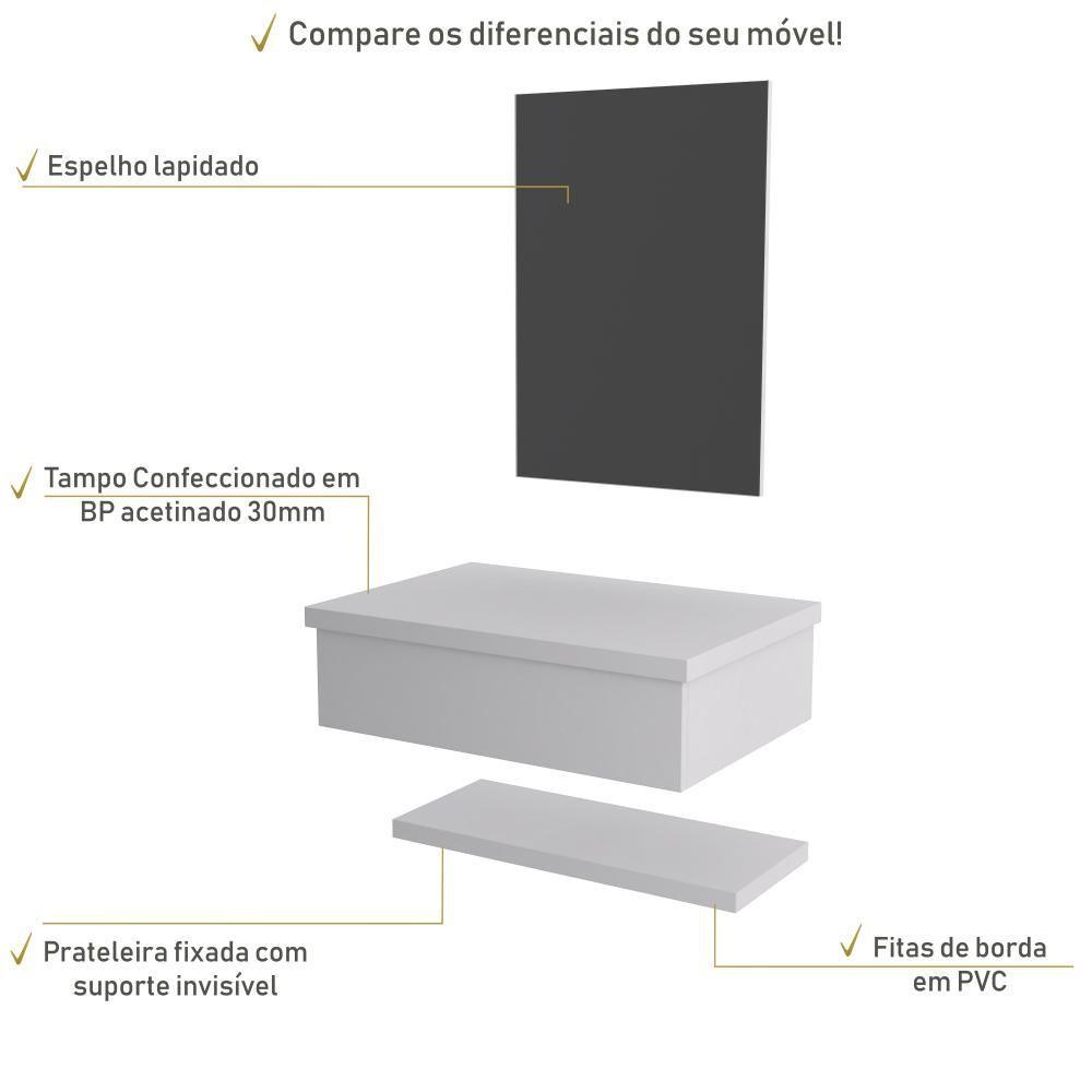 Conjunto Bancada, Prateleira E Espelheira Ktme607 Perffect Acetinado Branco Chess