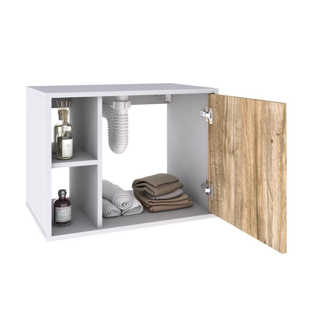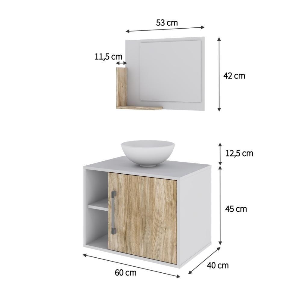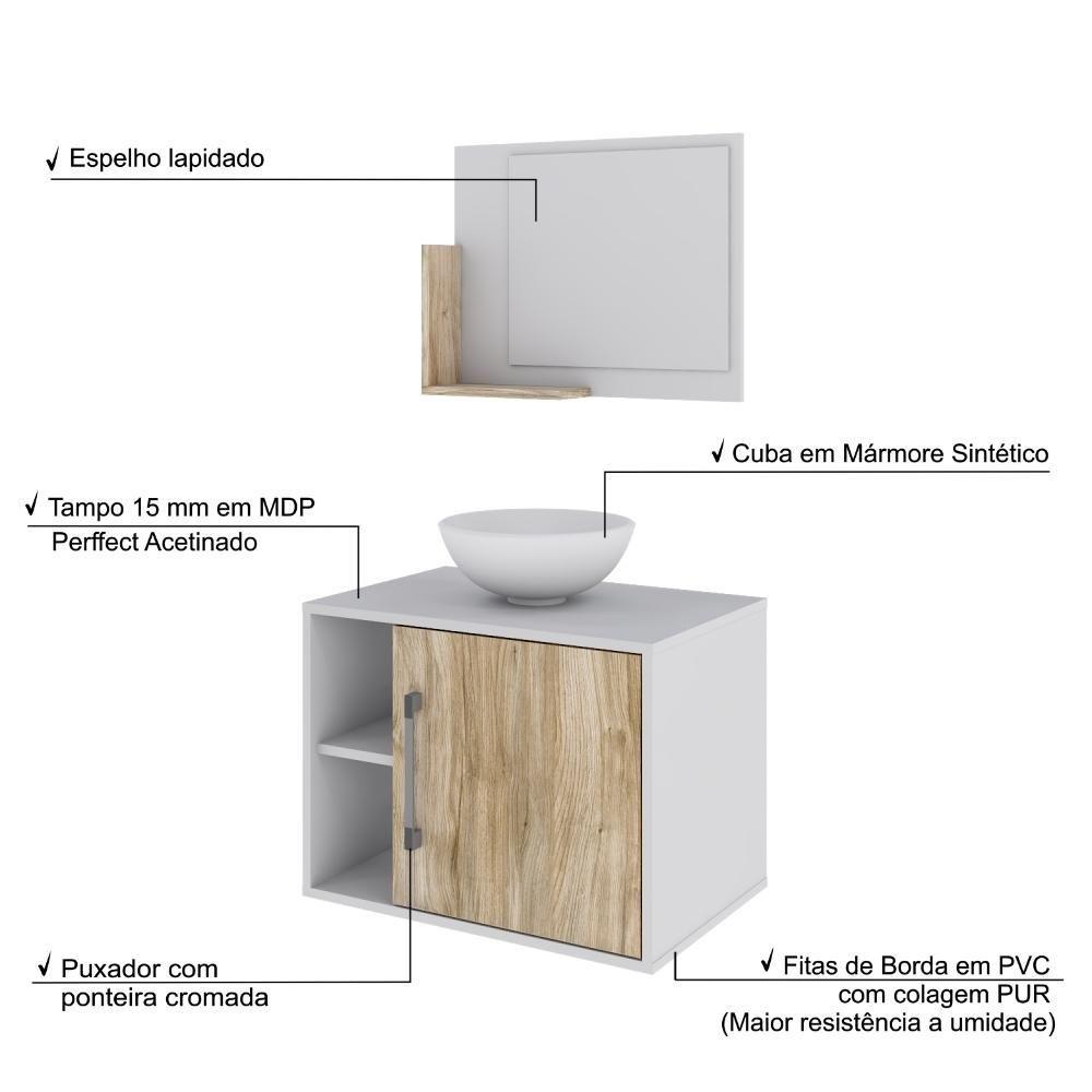 Conjunto Balcão Com Cuba R30 E Espelheira Soft 600 Branco Chess Branco Chess Com Carvalho