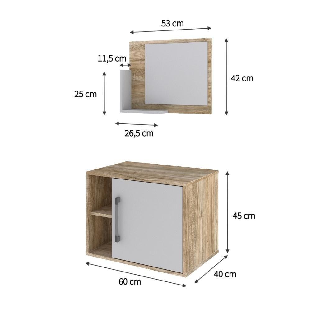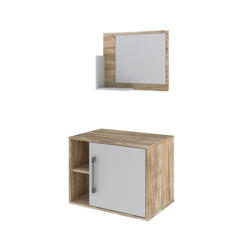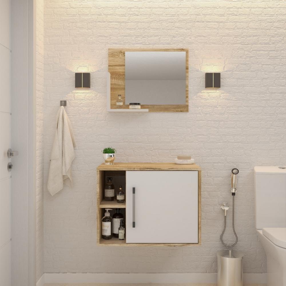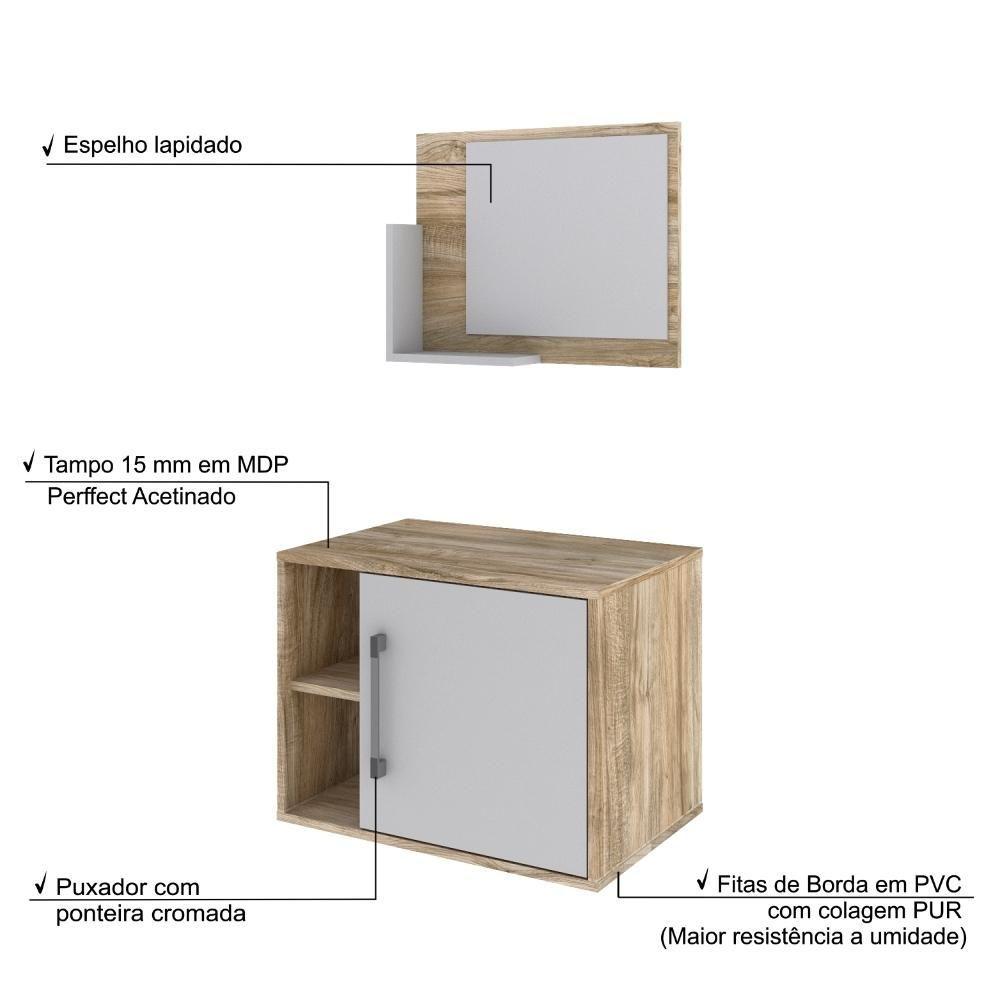 Conjunto Balcão E Espelheira Soft 600 Perffect Acetinado Carvalho Com Branco Chess