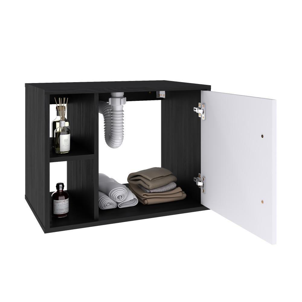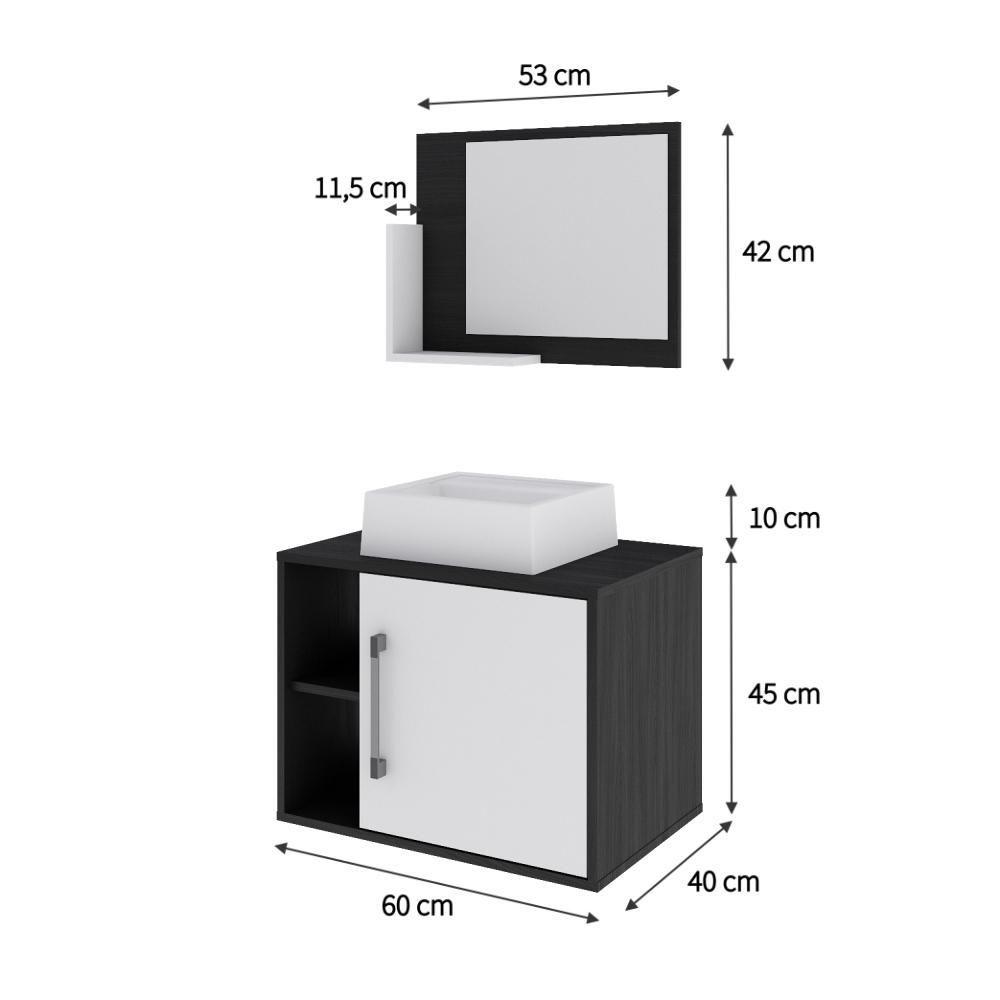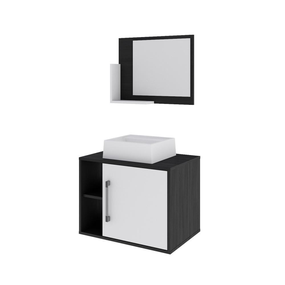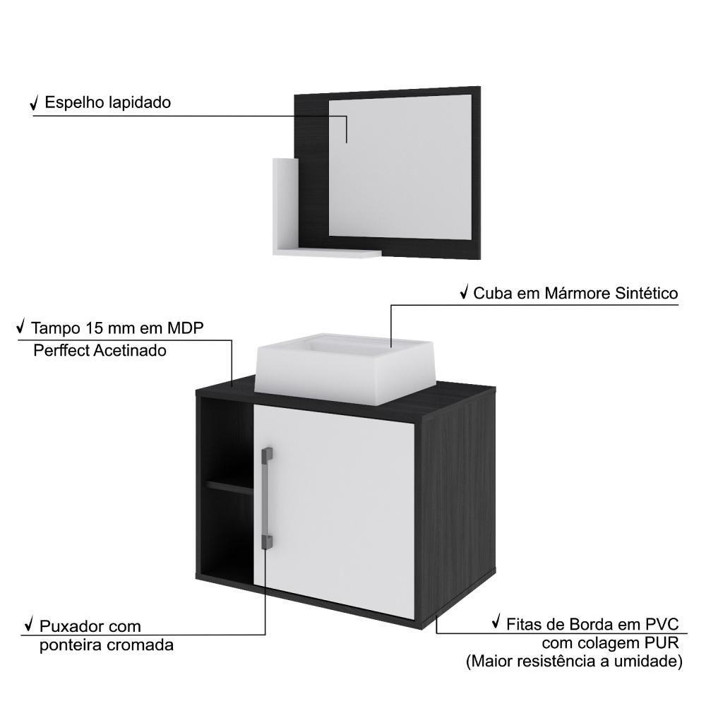 Conjunto Balcão Com Cuba Q32 E Espelheira Soft 600 Preto Ônix Preto ônix Com Branco Chess