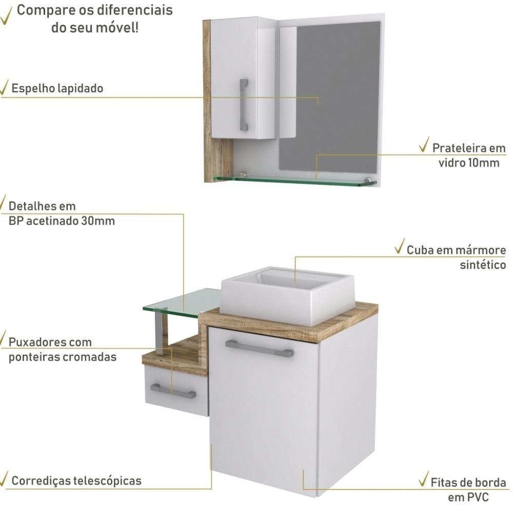 Conjunto Balcão Com Cuba Q32 E Espelheira Legno 630 Branco Chess Com Branco Chess Branco Chess Com Carvalho