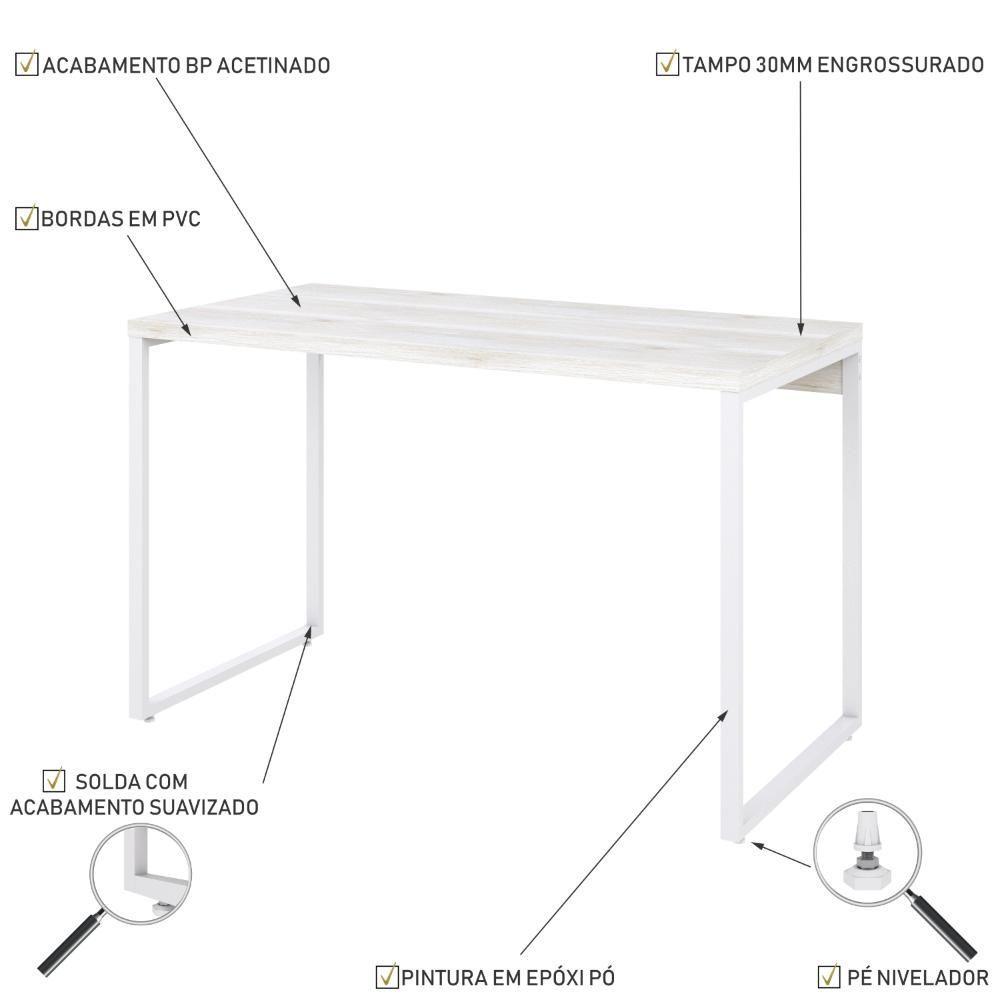 Mesa Kuadra Office 120x60x75cm Snow/Est.branca