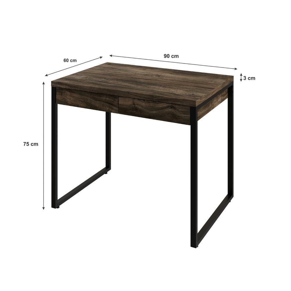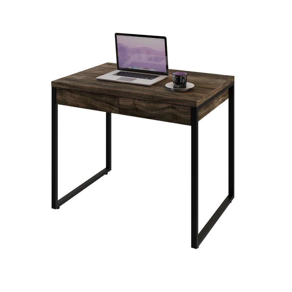 Mesa Kuadra Office 90x60x75cm Com 2 Gavetas Carvalho Dark Est.preta