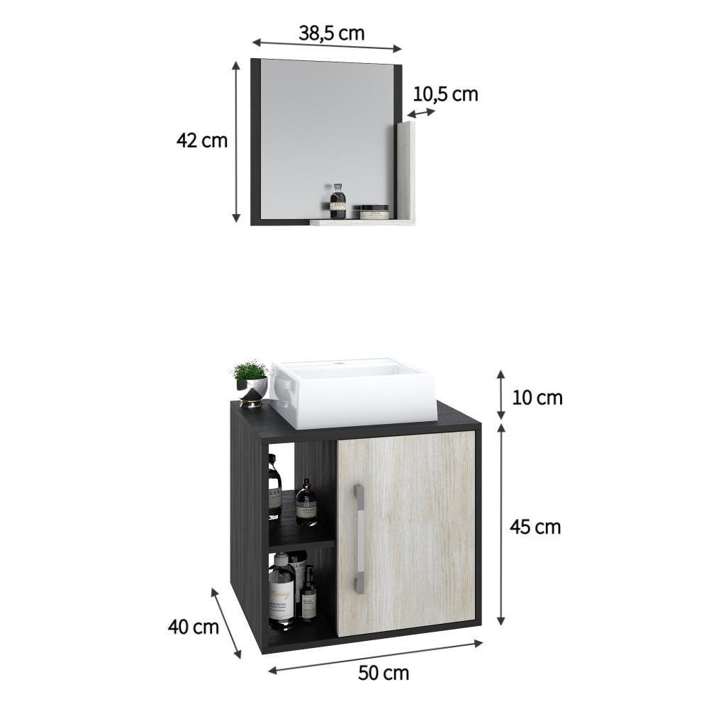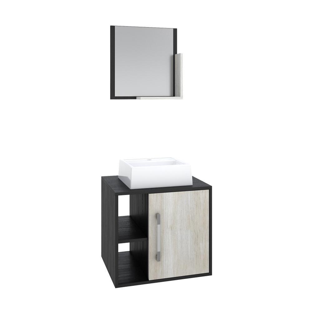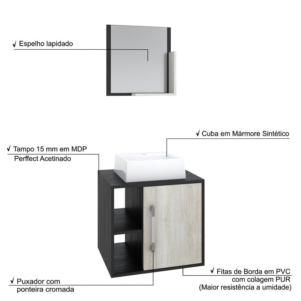 Conjunto Balcão Com Cuba Q32 E Espelheira Soft 500 Preto Ônix Com Nogal Preto Onix Com Snow