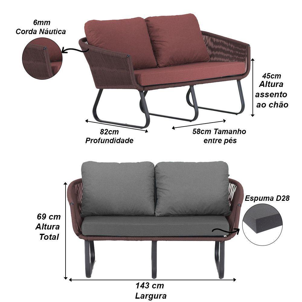 Sófa Namoradeira Milão Em Alumínio E Corda Trama Original Marrom