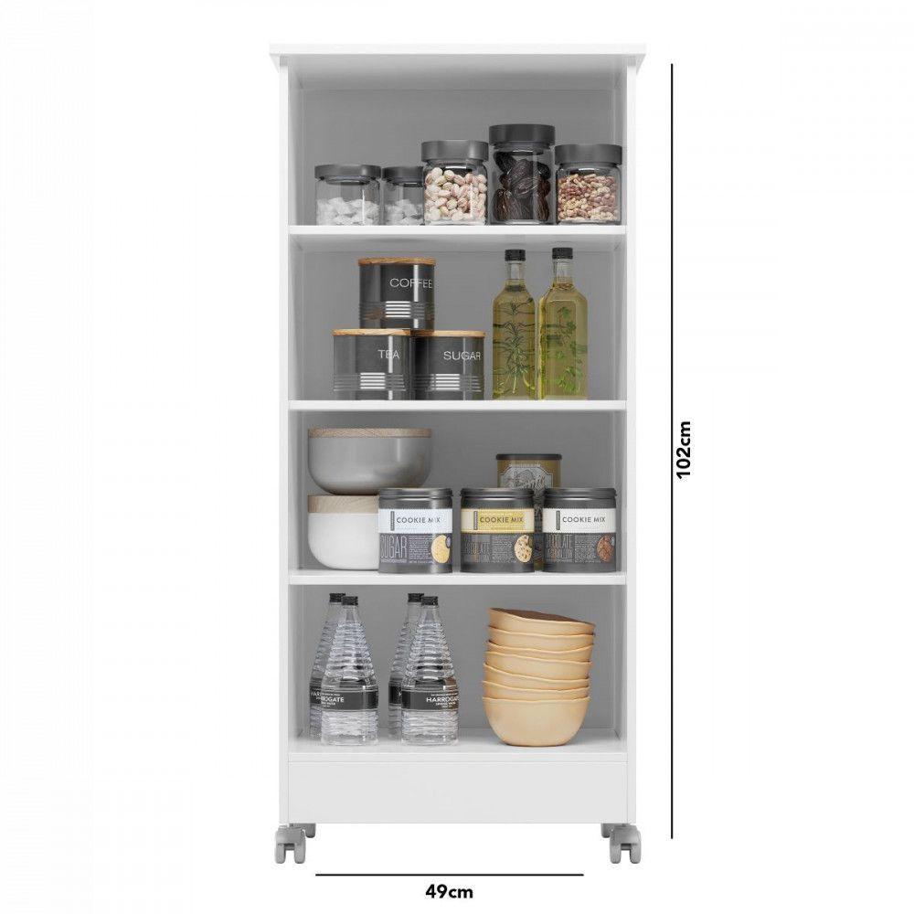 Armário Multiuso Organizador 1 Porta Com Rodízio Lírio Branco Moval BrancoO Armário Multiuso Organizador Lírio da Moval busca atender suas necessidades do dia a dia, garantindo praticidade e organização de seus objetos. O Multiuso tem sua estrutura em MDP, 1 porta e 3 prateleiras para organizar tudo que você precisa! Medidas: Altura: 102 cm Largura: 49 cm Profundidade: 41 cm Peso: 22,510 Kg Características: - Estrutura em MDP 15 e 12mm - 1 porta - 3 prateleiras - Suporte de peso prateleira 6kg - Acabamento pintura Brilho - Puxador Plástico - Não possui chaves - 4 Pés em rodizio - Necessita de Montagem (Acompanha Manual) - Garantia 03 meses AVISO: , ou seja: é de total responsabilidade do cliente a montagem, desmontagem e instalação do produto adquirido. antes de finalizar a compra, devendo certificar-se de que a mercadoria passará normalmente por elevador, porta, escada e corredor.