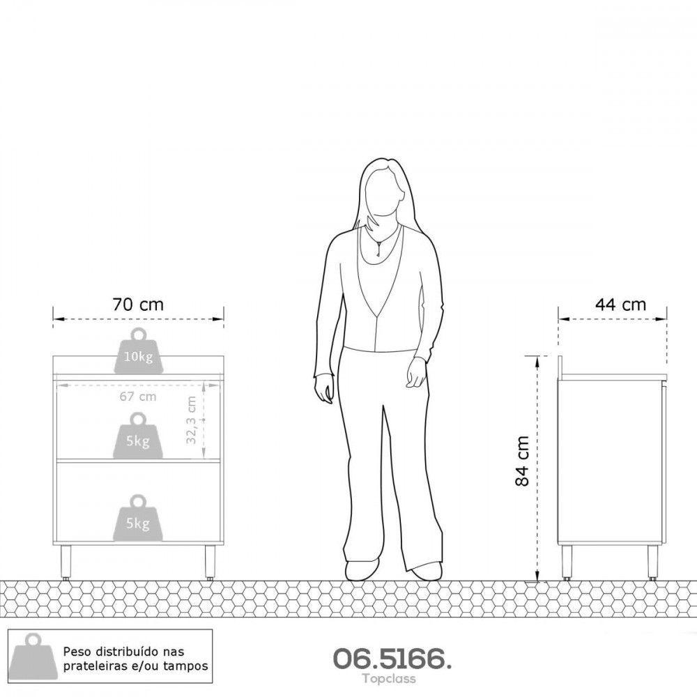 Balcão De Cozinha Top Class Mdp Preto E Branco Brilho Batrol Branco/pretoBalcao Top Class e um movel com design moderno que foi desenvolvido para agregar beleza para sua cozinha ou lavanderia. Com excelente espaco interno para armazenar os utensilios necessarios, ele conta com 2 portas e com um excelente acabamento com pintura UV para maior durabilidade do movel.Dimensoes: Altura (com pes): 84 cm | Largura: 70 cm | Profundidade: 44 cm Caracteristicas: - Estrutura em MDP de 15 e 25 mm - Puxadores perfil aluminio - Dobradicas metalicas de 26 mm - 4 Pes Regulaveis de plastico - Cantoneira Estrutural - Pintura UV brilho - Suporte de peso prateleira: 5 kg distribuidos - Garantia 12 meses **Imagens ilustrativas. Objetos nao acompanham o produto. AVISO: Esclarecemos que a Opcao Moveis se responsabilizara pela dos produtos adquiridos ate a porta de entrada ou portaria do endereco indicado, ou seja: e de total responsabilidade do cliente a montagem, desmontagem e instalacao do produto adquirido. Para evitar futuros desagrados ou imprevistos com a , tambem e necessario que o cliente confira as dimensoes do produto escolhido, antes de finalizar a compra, devendo certificar-se de que a mercadoria passara normalmente por elevador, porta, escada e corredor.