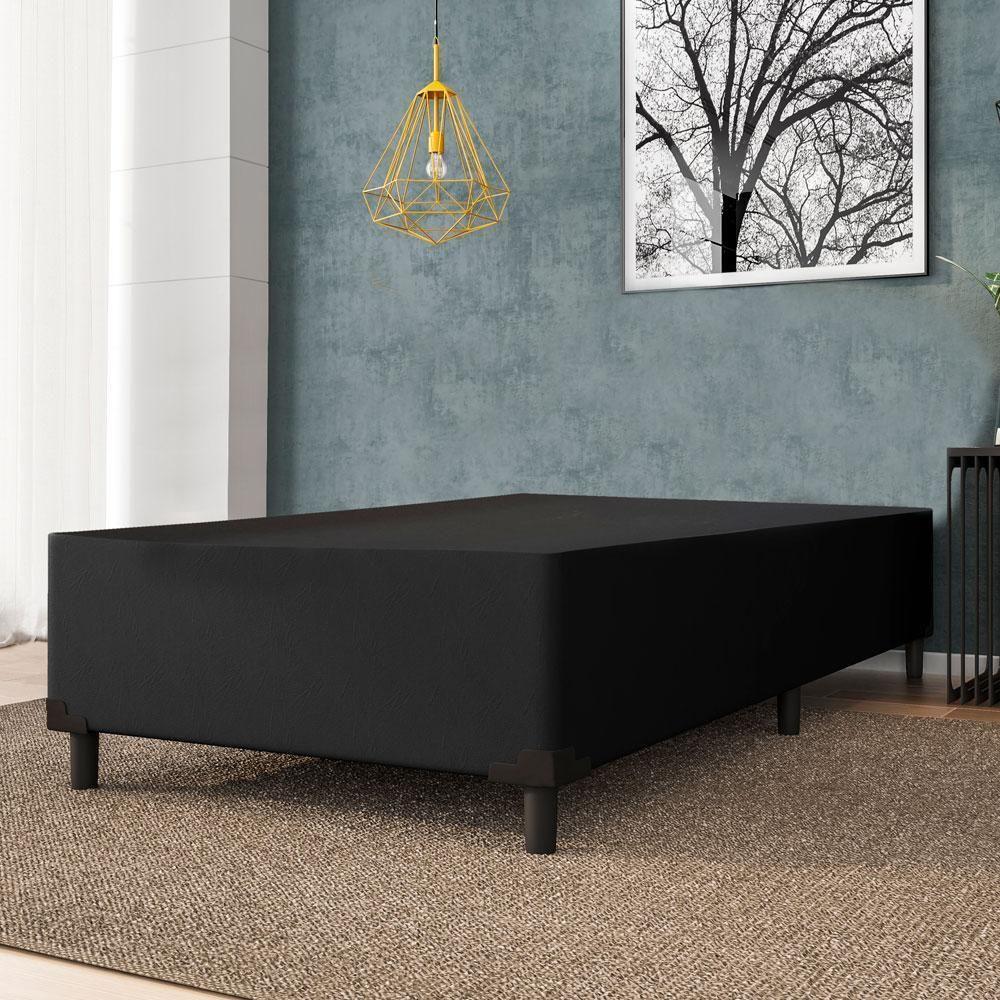 Cama Box Solteiro 0,88m E 38cm De Altura Suede Prince Preto Preto