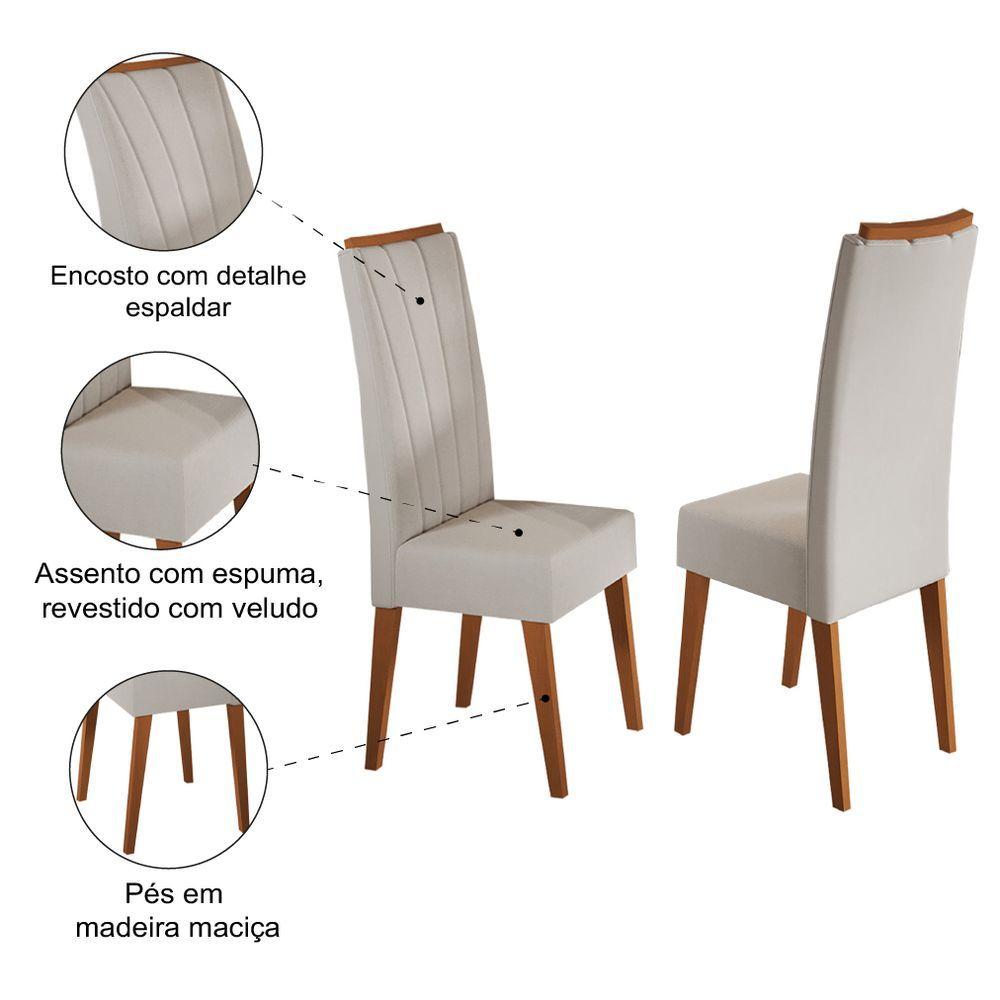 Conjunto Com 2 Cadeiras Estofadas Veludo Sala De Jantar Sofia Viero Madeirado / Bege