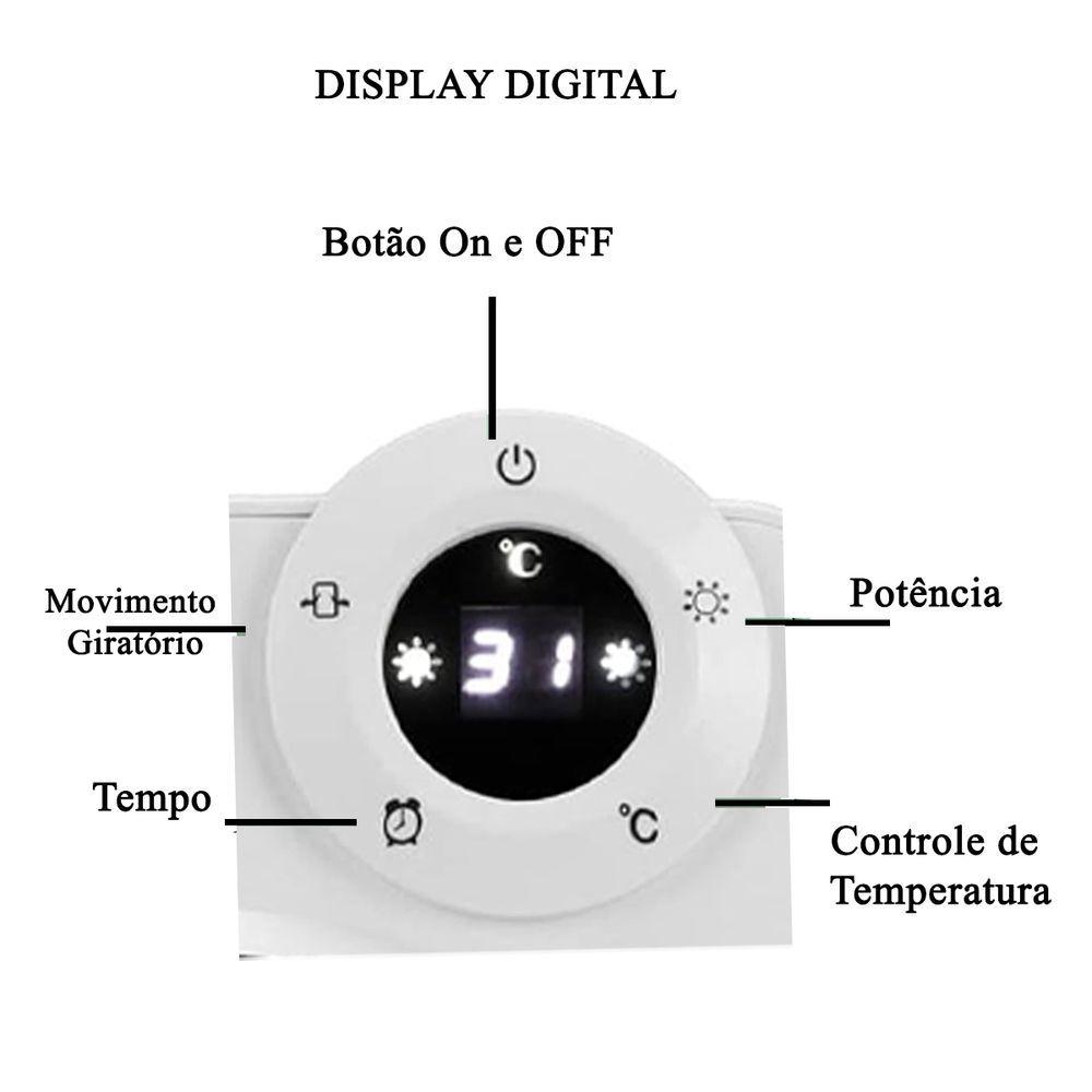 Aquecedor Eletrico Display Digital Angulo 70 Graus Controle Temperatura Ajustavel Potente Casa Quarto Ambiente Interno