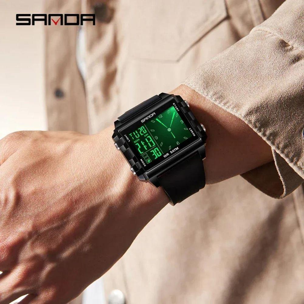Relógio Analógico Digital 6273 Luminoso À Prova Da Água Sanda PretoDescubra sua nova obsessão com o Relógio Eletrônico SANDA 6273, uma peça indispensável que combina estilo e funcionalidade. Este relógio impressiona com seu design moderno e esportivo, perfeito para quem valoriza tanto a moda quanto a praticidade. Equipado com recursos inovadores, este acessório oferece uma experiência única, ideal para o uso diário ou atividades ao ar livre. Com um mostrador analógico-digital e uma forte presença em qualquer pulso, você estará preparado para qualquer ocasião.Feito para durar, o SANDA 6273 é À Prova Da Água, com uma profundidade de resistência de até 5 bar, garantindo que você esteja pronto para qualquer aventura aquática. A pulseira de silicone proporciona conforto máximo, enquanto a caixa de resina traz durabilidade e resistência a choques. Suas funcionalidades luminosas e luz de fundo tornam fácil a visualização em qualquer ambiente, seja nas trilhas ou na cidade. Especificações [Design robusto] O SANDA 6273 possui uma caixa retangular de 15mm de espessura e 45,5mm de diâmetro com um mostrador analógico-digital, garantindo um visual ousado e sofisticado que se destaca. [Conforto e durabilidade] Sua pulseira feita de silicone de 25mm de largura e 26cm de comprimento, combinada com um fecho de fivela, oferece ajuste perfeito e durabilidade prolongada. [Resistência À Prova Da Água] Com profundidade de resistência à água de 5 bar, você pode explorar sem preocupações, de atividades esportivas a mergulhos casuais. [Recursos avançados] O relógio possui tela de LED, cronógrafo, calendário completo, alarme e função de repetição, mantendo você sempre atualizado. [Material de alta qualidade] O visor é feito de Hardlex, conhecido pela sua resistência a riscos, perfeito para uso ativo e proteção do mostrador.