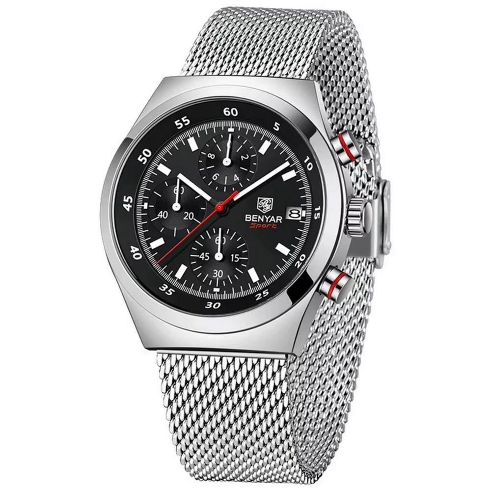 Relógio Masculino Quartzo Design Esportivo Com Cronógrafo À Prova Da Água Prata