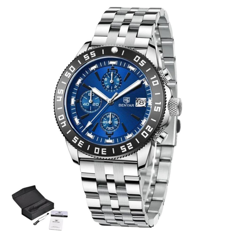 Relógio Marca Superior De Luxo Quartzo Benyar Aço Inoxidável Azul