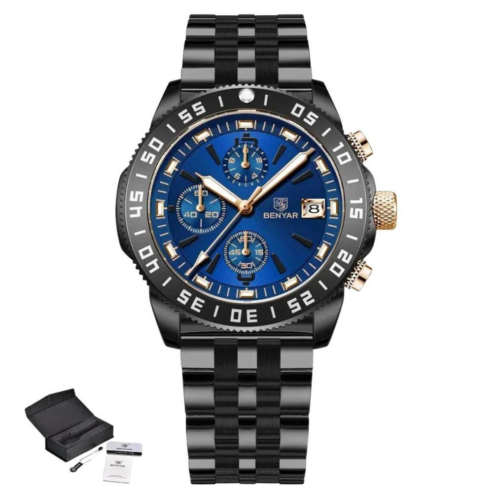 Relógio Marca Superior De Luxo Quartzo Benyar Aço Inoxidável Preto Azul
