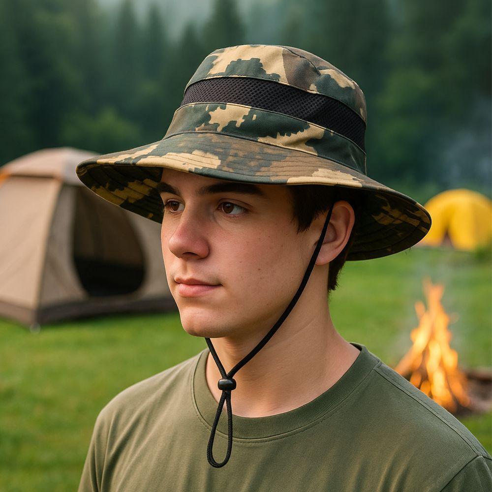 Chapéu Camuflado Australiano Canavieiro Respirável Pesca Marrom