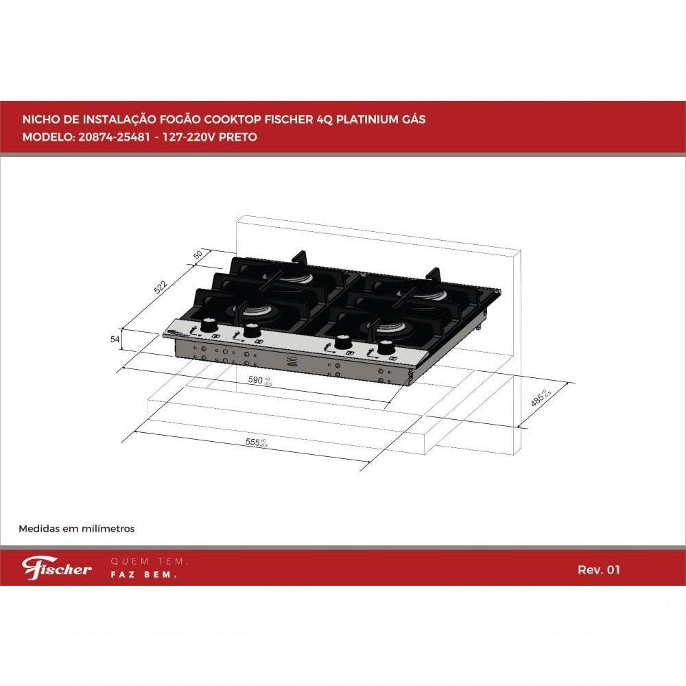 Fogão Cooktop Fischer 4 Queimadores Platinium - Bivolt Bivolt