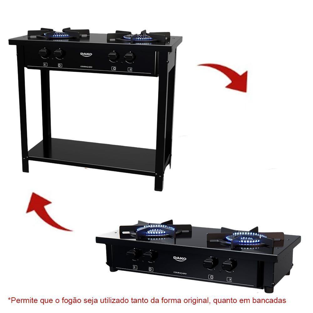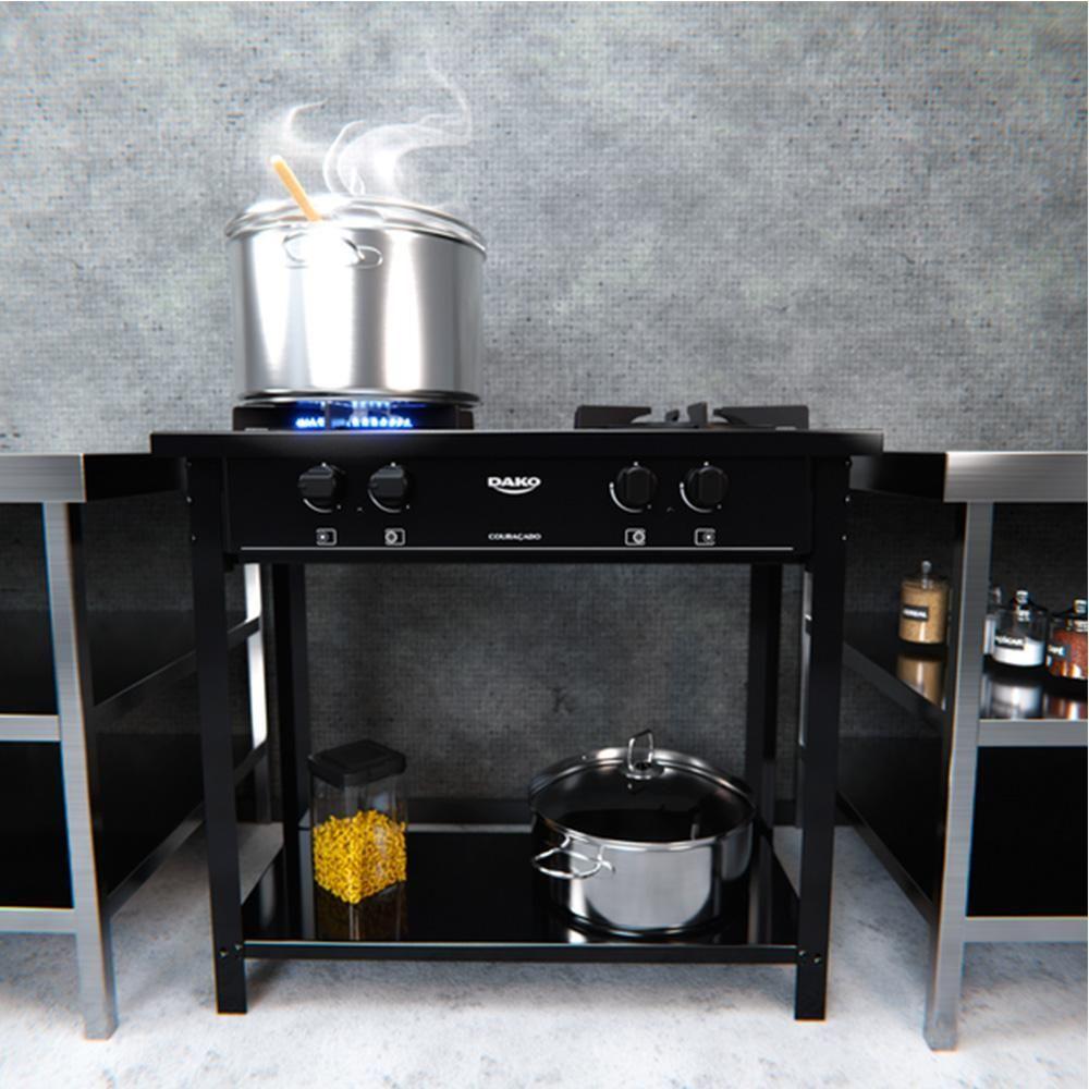 Fogão Industrial 2 Bocas Dako Com Chama Dupla E Pés Preto