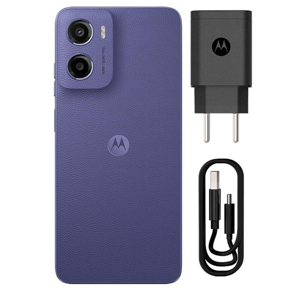 Smartphone Motorola Moto G05 128GB 12GB RAM Boost E Câmera 50mp Com AI Bateria De 5200 Mah VioletaCom o Smartphone Motorola G05, você pode usar a tela mesmo com as mãos molhadas, graças à tecnologia Smart Water Touch. Sua tela de 6,7 polegadas, com o maior brilho da categoria, garante imagens nítidas até sob a luz do sol. Capture fotos incríveis com a câmera de 50MP aprimorada por Inteligência Artificial e aproveite o design sofisticado com acabamento em Vegan Leather.Principais Características:Tela Inteligente de 6.7" com Proteção: A tela grande e com brilho intenso oferece uma ótima visualização em qualquer ambiente. A proteção Corning Gorilla Glass 3 e a tecnologia Smart Water Touch garantem resistência e resposta ao toque, mesmo com as mãos molhadas.Câmera de 50MP com IA e Night Vision: A câmera com Inteligência Artificial aprimora a qualidade dos seus registros, e o modo Night Vision é ativado automaticamente em ambientes com pouca luz para garantir fotos perfeitas à noite.Desempenho com RAM Boost: O processador Octa-Core, combinado com 12GB de RAM total e 128GB de armazenamento, garante fluidez para rodar vários aplicativos e jogos sem travamentos.Super Bateria de 5200 mAh: Uma bateria de longa duração para acompanhar seu ritmo, garantindo muitas horas de uso sem a preocupação de ficar sem carga ao longo do dia.Design Premium em Vegan Leather: O acabamento traseiro em couro vegano, além de ecológico, proporciona uma pegada mais confortável e um visual sofisticado ao smartphone.Especificações Técnicas:Marca: MotorolaModelo: Moto G05Voltagem: Carregador BivoltCódigo: XT2523EAN: 7892597355310Sistema Operacional: AndroidMemória RAM: 12GB (4GB Físico + 8GB RAM Boost)Armazenamento: 128GBTela: 6.7" HD+, Gorilla Glass 3Câmera Principal: 50MPBateria: 5200 mAhCódigo Anatel: 08269-24-00330Cor: VioletaPeso: 190 gDimensões [AxLxP]: 16,3 x 7,5 x 0,8 cmGarantia: 12 meses