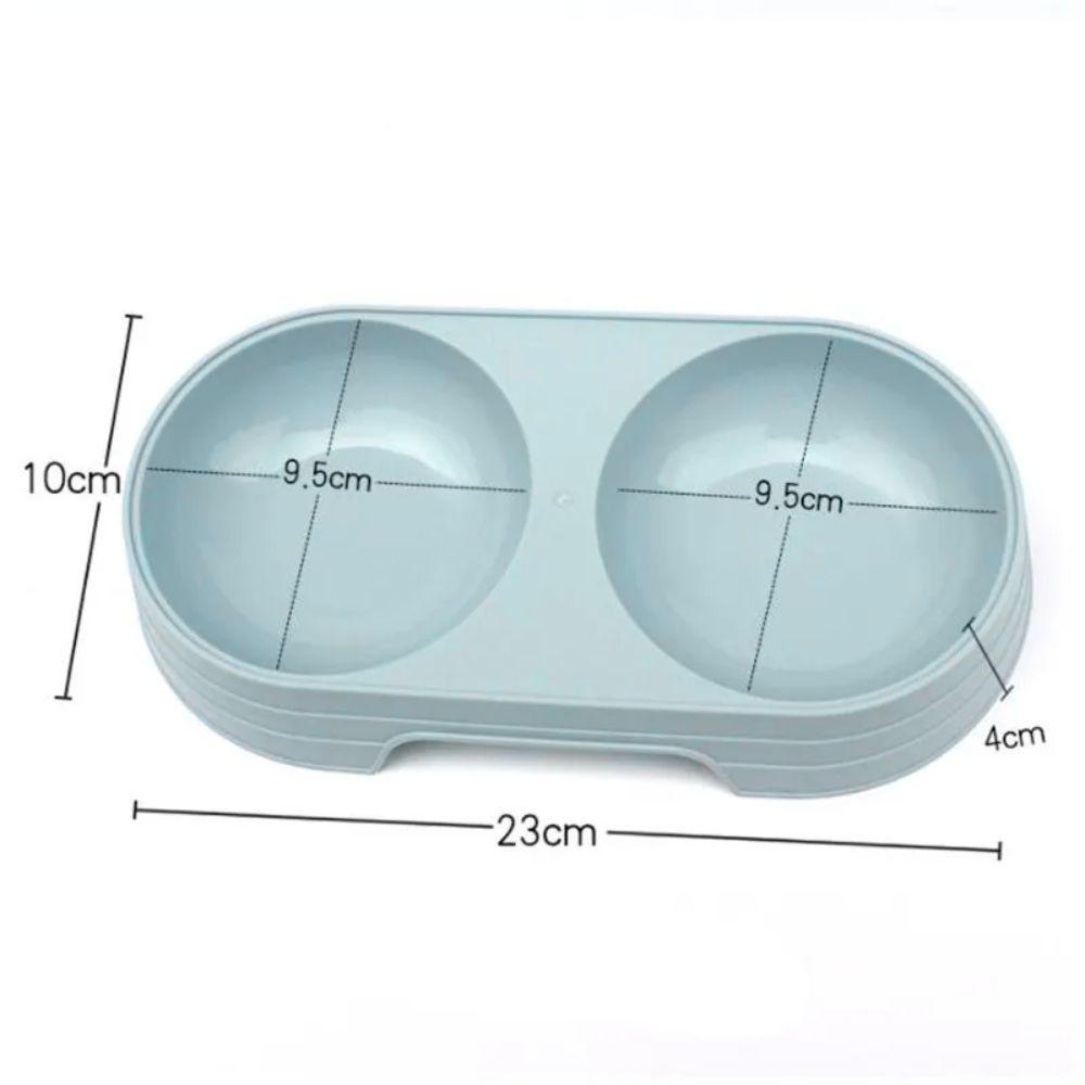 Comedouro Bebedouro Duplo 2 Em 1 Para Pets Cães E Gatos 200 Ml Em Cada Lado Azul
