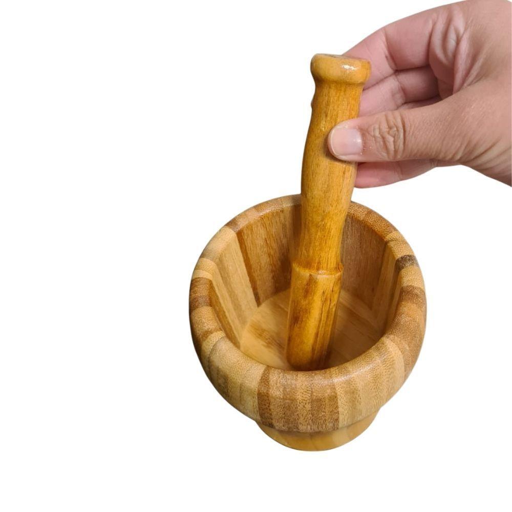 Kit Moedor Manual De Pimenta E Sal Grosso + Pilão Com Socador Em Madeira BambuKit Moedor de Pimenta e Temperos Manual em Madeira + Pilão com Socador – Compacto, Elegante e FuncionalEleve o sabor das suas receitas e traga mais charme para a sua cozinha com este kit exclusivo, composto por um Moedor de Pimenta e Temperos Manual em Madeira e um Pilão com Socador. Uma combinação perfeita para quem busca praticidade, eficiência e estilo na hora de cozinhar.Com design rústico e sofisticado, ambos são produzidos em madeira de alta qualidade, unindo durabilidade e beleza para uso doméstico ou profissional.Destaques do produto:Moedor manual compacto (13 cm): tritura pimenta-do-reino, sal grosso, cominho, coentro em grãos e outros temperos, preservando aroma e sabor.Regulagem da moagem: escolha entre granulação mais fina ou mais grossa, de acordo com o preparo.Pilão com socador (12 cm): ideal para macerar alho, ervas e especiarias, intensificando os sabores de forma prática e natural.Design elegante em madeira: toque rústico que combina com qualquer estilo de cozinha.Econômico e durável: dispensam pilhas e eletricidade, feitos para durar.Versatilidade: perfeitos para o dia a dia, churrascos, restaurantes ou como presente para amantes da gastronomia.Dimensões aproximadas:Moedor: 13 cm (altura) x 5 cm (diâmetro) – Peso: 120 gPilão com socador: 12 cm (altura) x 10 cm (diâmetro) – Peso: 320 gMaterial:MadeiraItens inclusos:1 Moedor manual de pimenta e temperos1 Pilão com socador