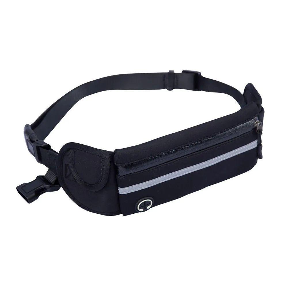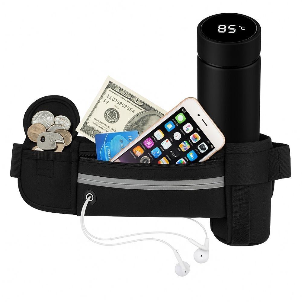 Kit Pochete Esportiva Para Corrida E Academia + Garrafa Térmica Inox 500ml Com Sensor De Temperatura Preto