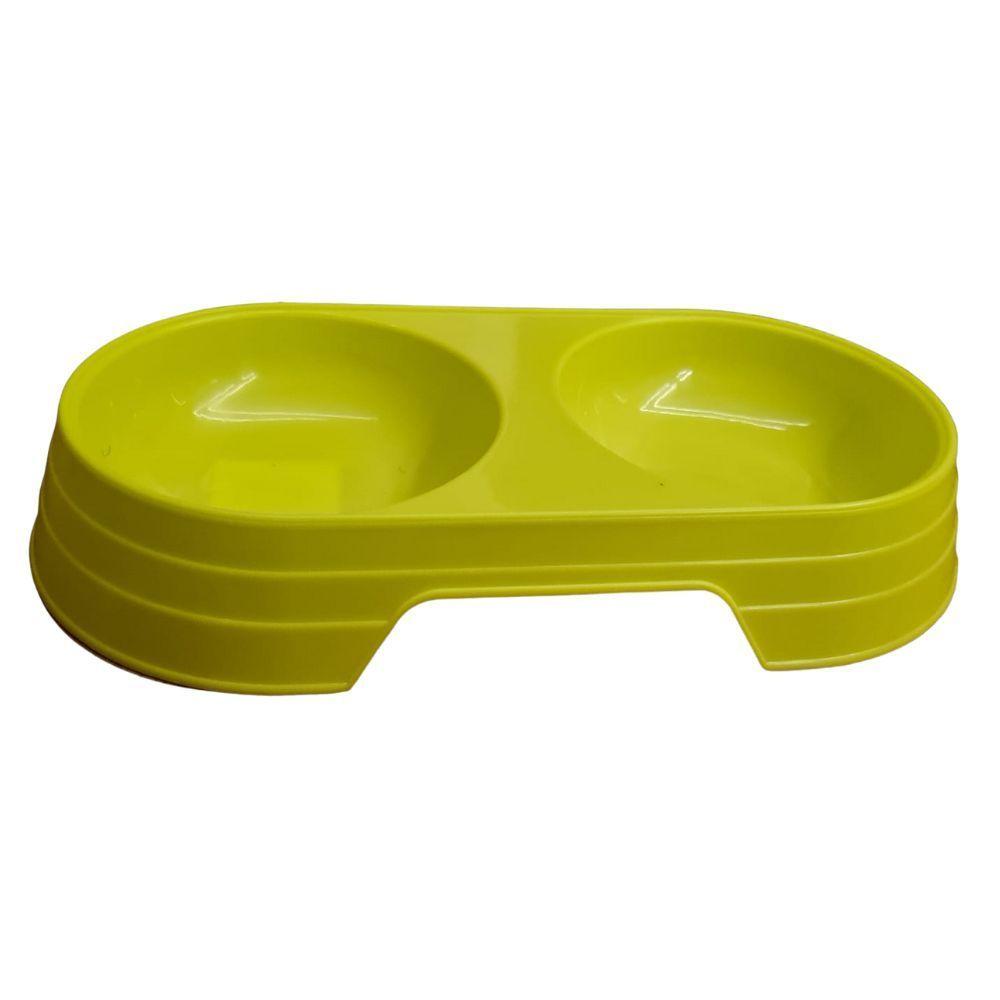 Comedouro Bebedouro Duplo 2 Em 1 Para Pets Cães E Gatos 200 Ml Em Cada Lado Verde