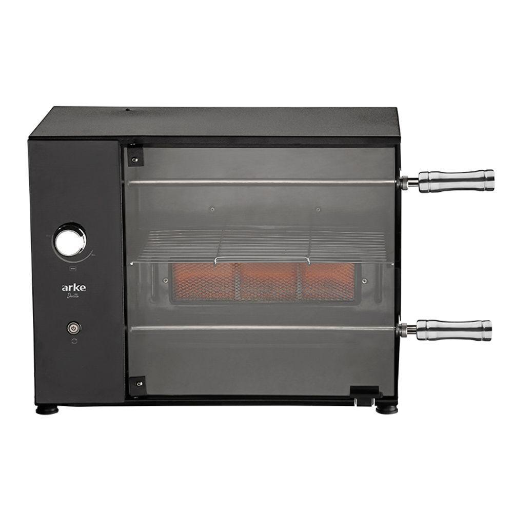 Churrasqueira A Gás GN Rotativa Elétrica 2 Espetos + Grelha Acendimento Manual Duetto 110V Arke