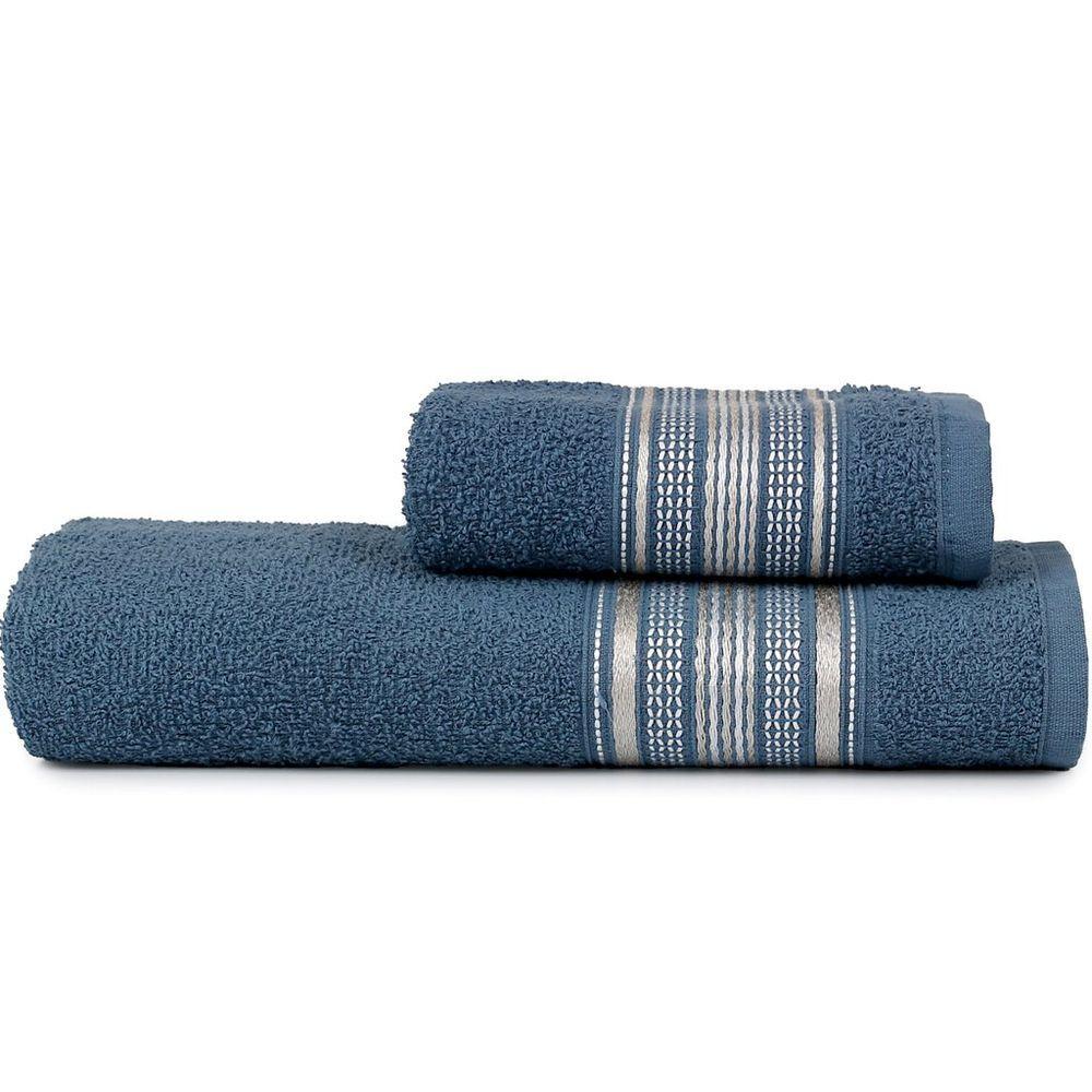 Jogo De Toalhas Banho E Rosto Rubi 280g-m² 98% Algodão Atlântica Azul Estrelar