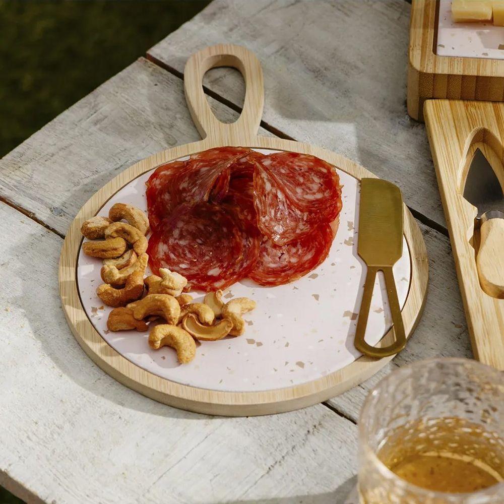 Tábua Redonda Bambu Lyor Para Servir Com Cabo 28x20x1cm