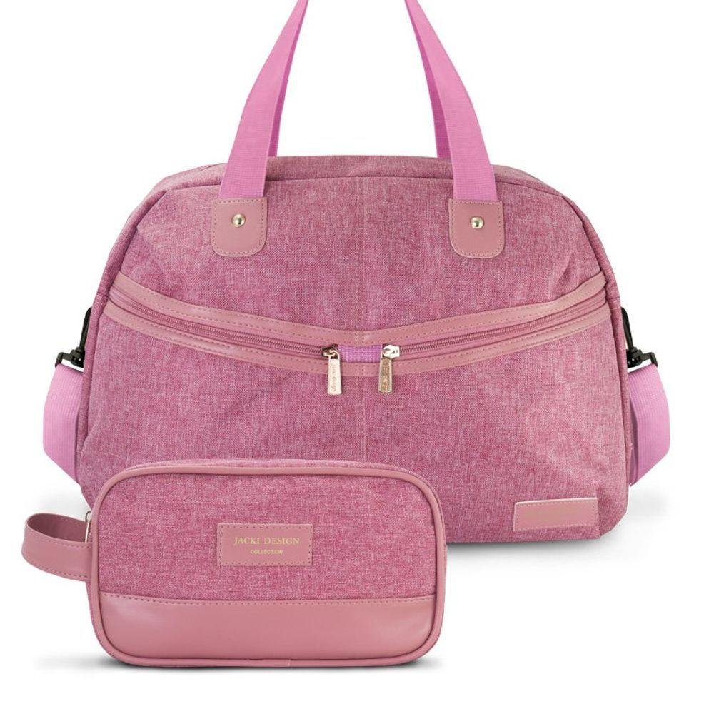 Conjunto De Bolsas Viagem 2 Peças Joy Jacki Design RosaConjunto de Bolsas Viagem 2 peças JOY Jacki Design Rosa -Bolsa de Viagem Jacki Design JoyPara quem é adepto ao estilo elegante, lançamos a coleção Be You, uma linha super versátil para o dia-a-dia. A bolsa Be You, possui um amplo espaço interno, alça de mão e alça lateral removível. Perfeita para o dia a dia e viagens. Mostre a sua essência com a coleção Be You! CUIDADOS GERAIS: Limpe a bolsa com um pano úmido. Caso necessário, use sabão neutro ou álcool para higienizar o local. Deixe secar na sombra. ATENÇÃO: Para preservar a vida útil do produto, recomendamos não deixar a bolsa de molho, não levar a máquina de lavar e também não utilizar produtos químicos.Medidas: Comprimento: 45cm x Largura: 20cm x Altura: 31cmMaterial: PoliésterNecessaire com Alça Lateral Jacki Design JoyPara quem é adepto ao estilo elegante, lançamos a coleção Be You, uma linha super versátil para o dia-a-dia. A necessaire envelope, possui um lindo design, amplo espaço interno, alça lateral, detalhes em couro e tag da marca. Seu fecho é em zíper, proporcionando segurança para os seus pertences. Coleção Be You: mostre a sua essência!Medidas: Comprimento: 23cm x Largura: 10cm x Altura: 14cmMaterial: Poliéster