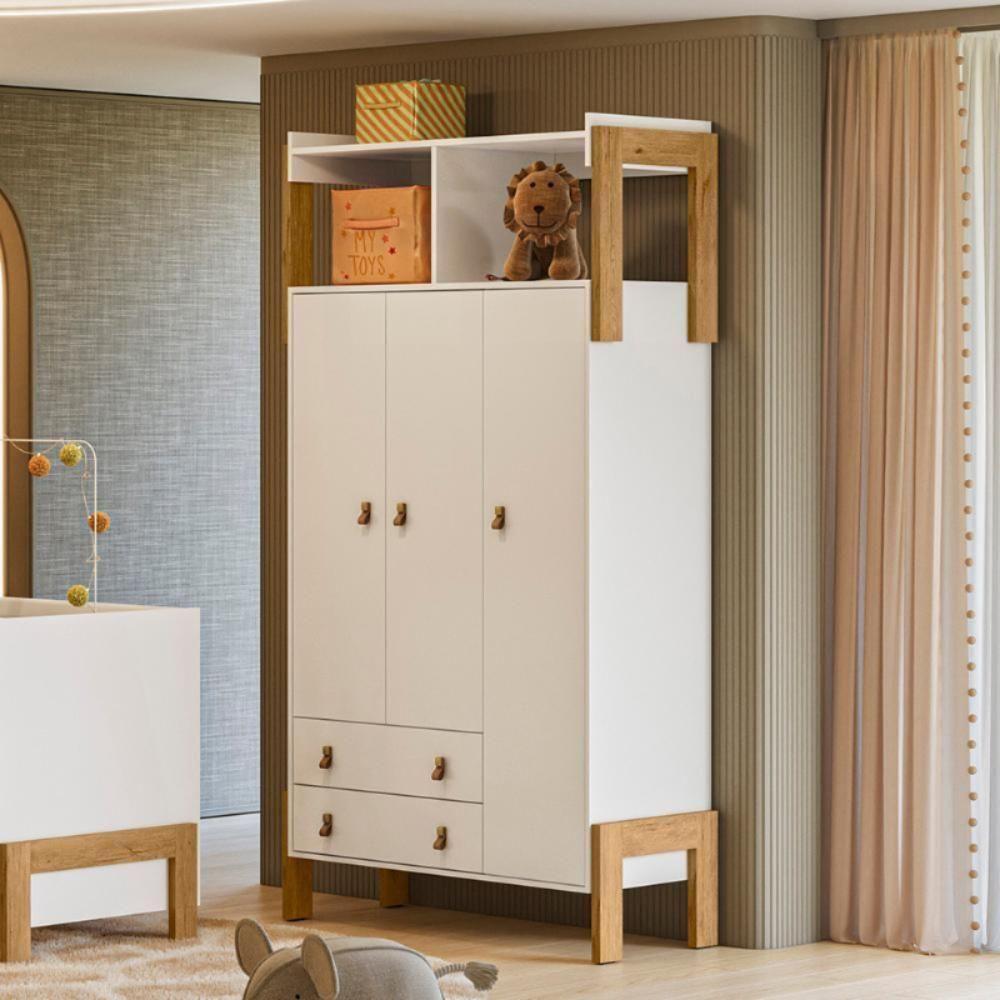 Guarda-roupa 3 Portas 2 Gavetas Com Nicho Fantasia Branco Acetinado
