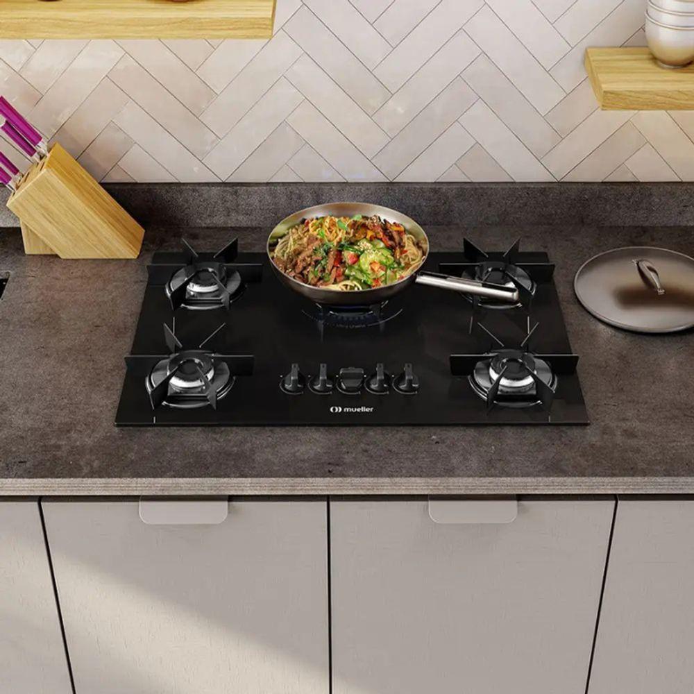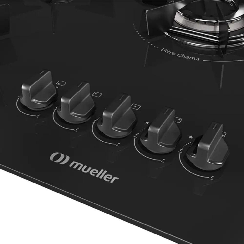 Cooktop 5 Bocas Gás Mesa De Vidro Bivolt Preto Mueller