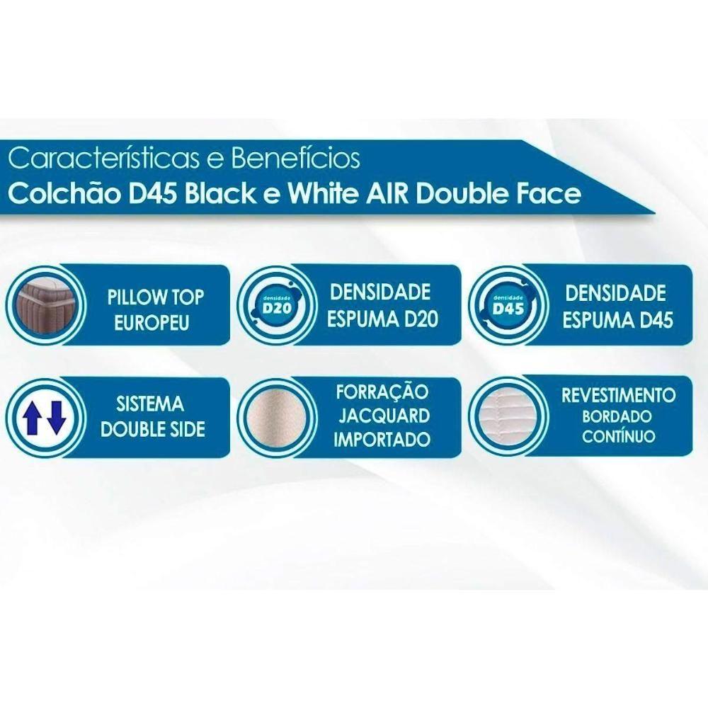 Cama Box Baú King: Colchão Espuma D45 Castor Black e White Air Double Face + Base CRC Courano White(193x203)