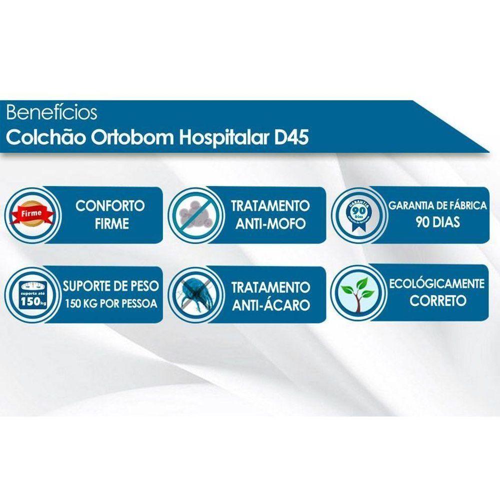 Colchão Solteiro Hospitalar Impermeável D45 Napa Azul (88x188x12) - Ortobom
