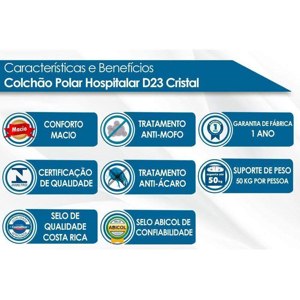 Colchão Solteiro Espuma D23 Hospitalar Impermeável Cristal Napa Azul (78x188x12) - Polar
