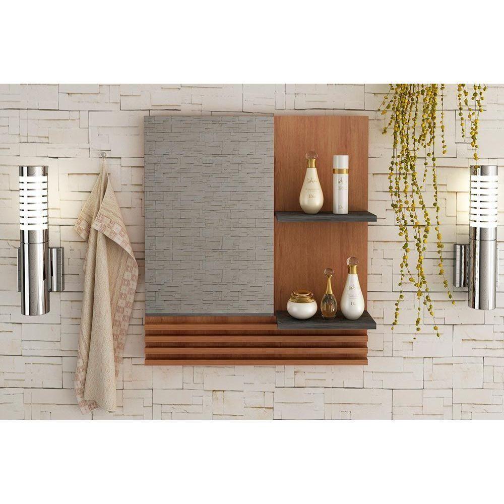 Armário de Banheiro c/Espelho BN3614 2 Prateleiras 60cm cor Amendoa/Marmore Lunar - Tecno Mobili