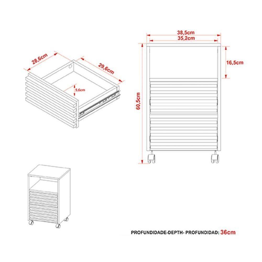 Gaveteiro p/ Escritório c/ 2 Gavetas e Rodizios Ripado ME4175 Amêndoa - Tecno Mobili Marca: Tecno MobiliDimensões(Cm): Comprimento(Profundidade): 36cm x Largura: 38,5cm x Altura: 60,5cm Material de Estrutura - Estrutura 100% MDP Vantagens Extra dos Móveis de Escritório - Rodízios Estilo do Móvel - Estilo Ripado Tipo de Corrediça - Corrediças Telescópicas Tipo de Pintura - Pintura em UV (Ultravioleta) Tipo dos Pés - Rodízios em PVC Quantidade de Pés - Móvel com 4 Pés Quantidade de Gavetas - 2 Gavetas Quantidade de nichos - 1 Nicho Garantia - Garantia de 90 dias Certificação de Qualidade - Qualidade AprovadaImagens Meramente Ilustrativas.Não nos responsabilizamos pela montagem/instalação dos produtos.Todas as informações divulgadas são de responsabilidade exclusiva do fabricante/fornecedor. Vantagens Extra dos Móveis de Escritório: Rodízios Necessita Montagem?: Sim Com Portas USB: Não Com tomadas: Não Com Suporte Para Pastas Suspensas: Não Com Fechadura: Não Com Prateleira para CPU: Não Inclui Chaves: Não Tipo de Acabamento: N/A Material das corrediças: Metal Com painel traseiro: Não Material das prateleiras: Madeira Possui Estante?: Não Material da estrutura: Madeira Tipo de Ambiente: N/A Material de Estrutura: Estrutura 100% MDP Tipo dos Pés: Rodízios em PVC Tipo de Pintura: Pintura em UV (Ultravioleta) Quantidade de Pés: Móvel com 4 Pés Quantidade de Gavetas: 2 Gavetas Tipo de Corrediça: Corrediças Telescópicas Quantidade de nichos: 1 Nicho Garantia: Garantia de 90 dias Certificação de Qualidade: Qualidade Aprovada Possui Abertura Passa Cabos: Não Com rodas?: Sim Possui Gavetas?: Sim Com Ângulo Ajustável: Não Com divisões: Não Estilo do Móvel: Estilo Ripado Possui Puxador?: Não Possui Portas?: Não Possui Prateleiras?: Não Possui Nichos?: Sim É kit?: Não Acompanha Manual de Instalação e Montagem?: Sim É resistente à água: Não Tipo de Produto: N/A Inclui kit de instalação: Sim Possui Garantia Complementar de após Prazo Legal: Não Garantia Legal de CDC em Meses: 3 Meses Condição do item: Fonte do produto: N/A Tempo de montagem: 1h Origem: Produto precisa de Montagem?: Sim, a montagem é simples mas sugerimos a contratação do nosso de montagem (para os CEPs em que o está disponível) ou de algum experiente de sua preferência Descrição do Tamanho: cm Estado de Origem: RJ País de origem: Peso Produto Com Embalagem (Kg): Material para Filtro: N/I Cor Mobly: N/I Condição do Item: Numeral: 0 Não se Aplica: N/A Não Possui: Não Linha/Modelo: Tecno Mobili Cor Cnova: Marrom Cor Meli: Marrom Categoria - Sub: Gaveteiro para Escritório Categoria - Pai: Móveis de Escritório Comprimento Embalagem: Largura Embalagem: Altura Embalagem: Peso: Kg Kit: 0 Peso Real Kg: Peso Cubado: Volumes: 1 M3: Comprimento/Profundidade: 36 cm Largura: 38 cm Altura: 60 cm Tamanho Montado: x Comp/ x Alt: Comprimento/Profundidade Montado: Largura Montado: Altura Montado: MPN: Cor Fabricante: Amêndoa Marca: Tecno Mobili Fabricante: Tecno Mobili Linha: Tecno Mobili