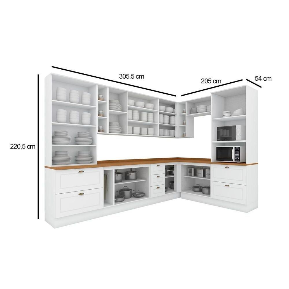 Cozinha Completa Americana 14 Peças (4 Armários + 2 Paneleiros + 4 Balcões + 4 Complementos) C5P58 Branco - Henn