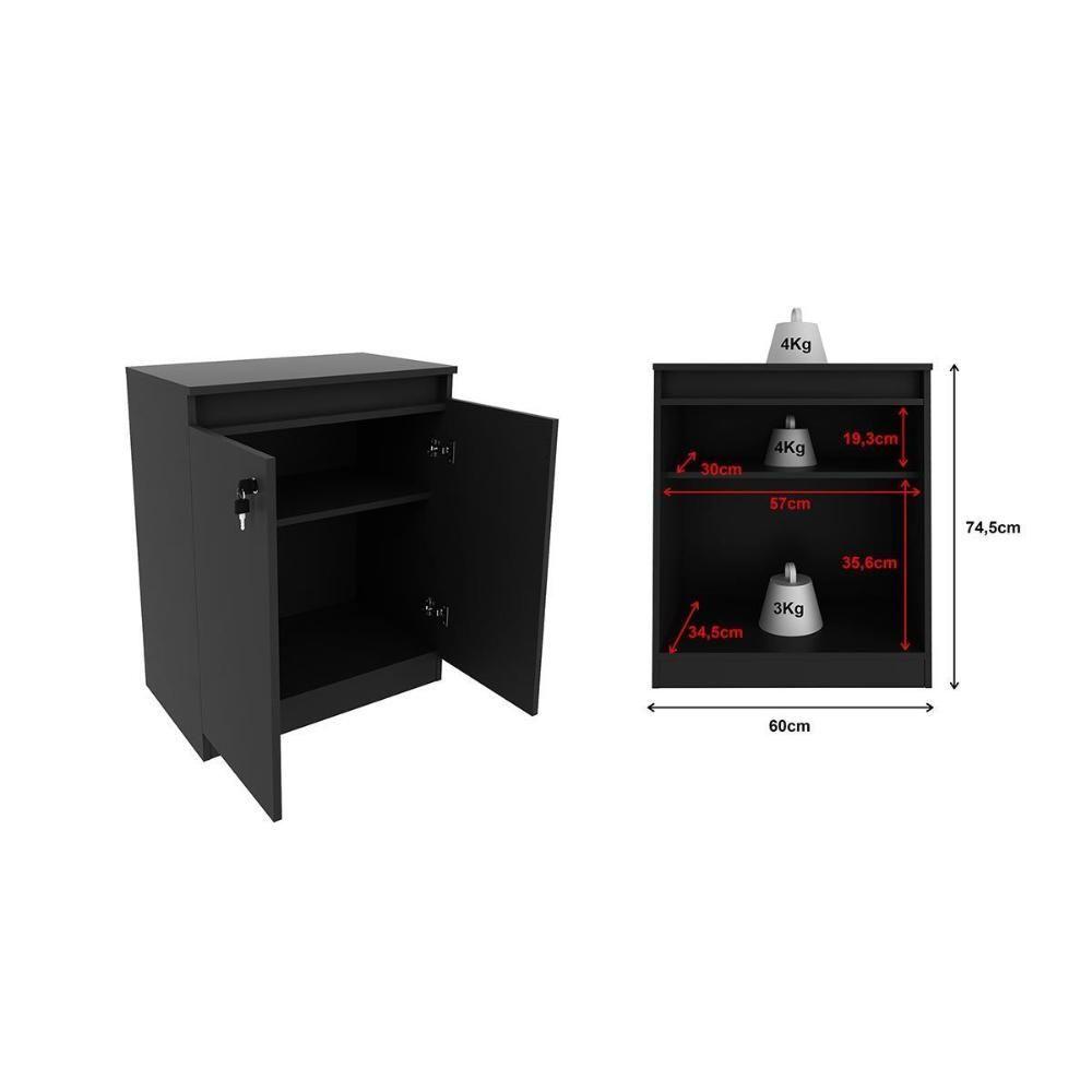 Balcão de Escritório ME4149 c/ 2 Portas c/ Chave Amêndoa/Preto - Tecno Mobili
