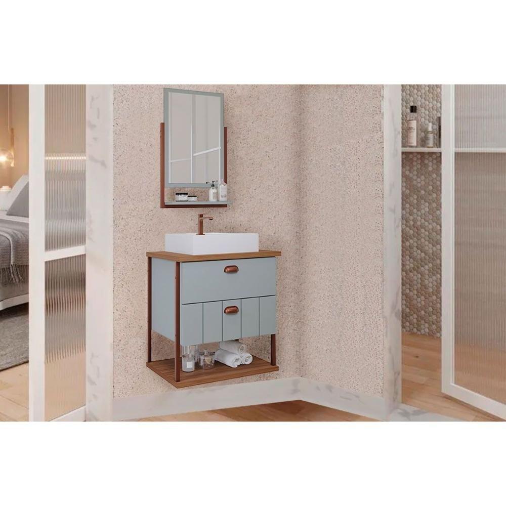 Conjunto De Banheiro Balcão Suspenso C-cuba 65cm E Espelheira Uni Pistache-freijo - Mgm
