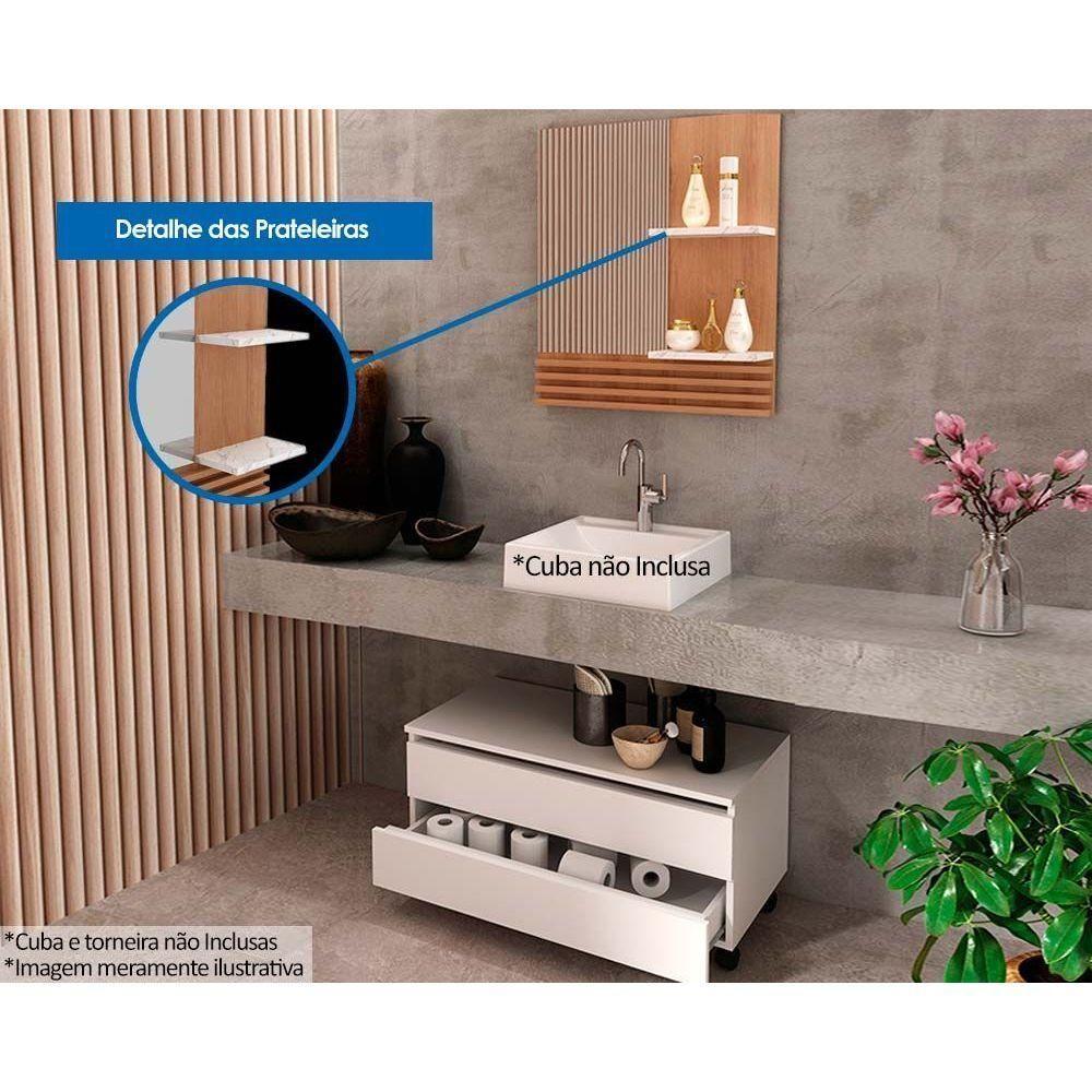 Conjunto De Banheiro Balcão C- Rodizios Bn3603 S- Cuba 80cm E Armário C- Espelho Bn3614 Amêndoa - Tecno Mobili