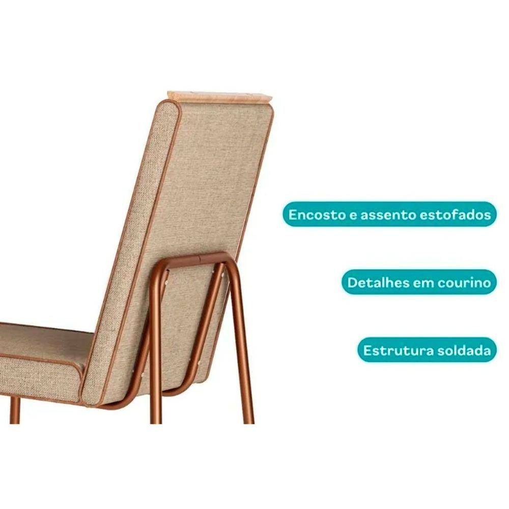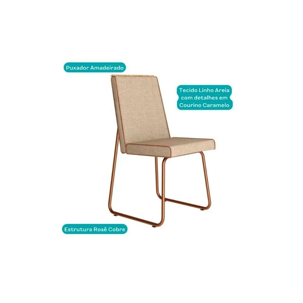Kit 2 Cadeiras Sala Jantar Lira 1752 Aço 2 Uni Rose-linho Areia-courano Caramelo - Carraro