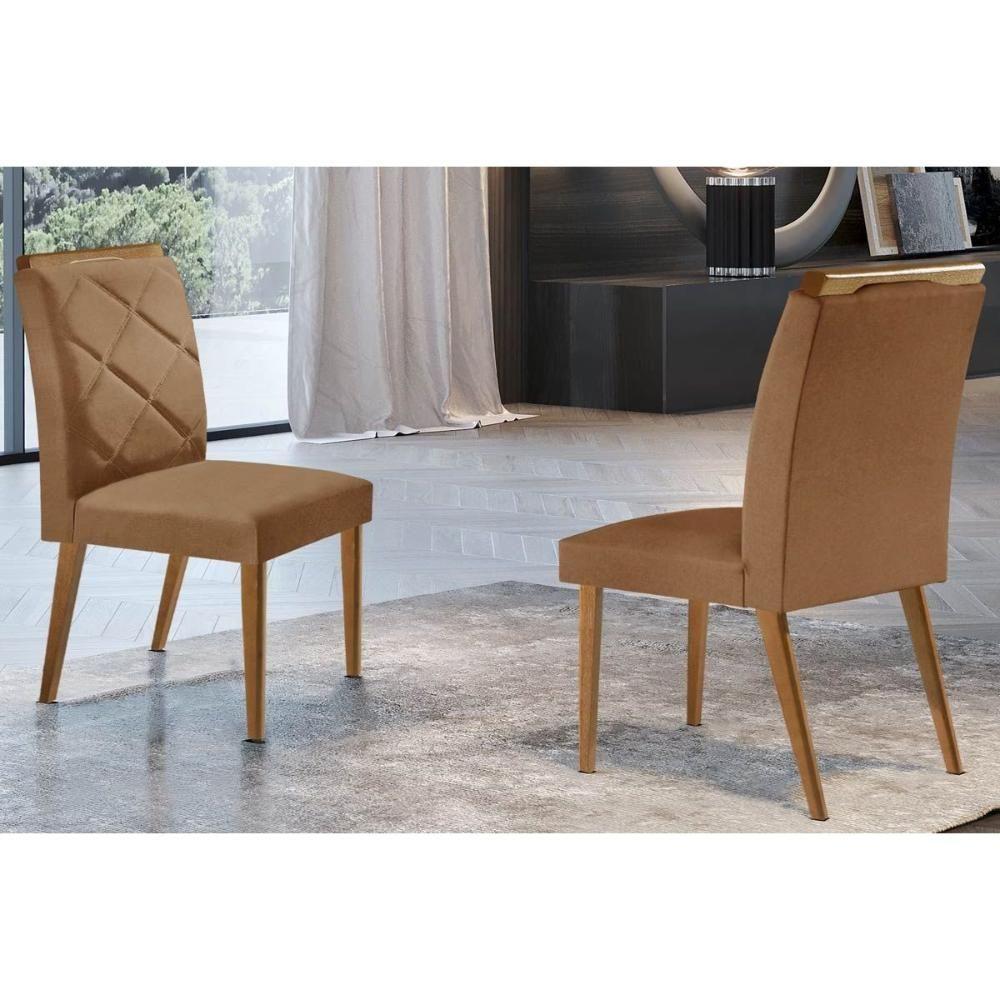 Kit 2 Cadeiras de Cozinha Melissa 2 Un Madeira Capuccino/Linho Bege Turim - Rufato