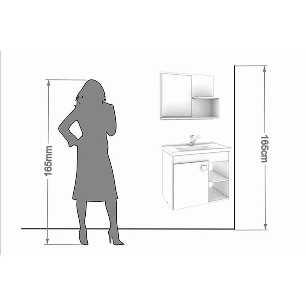 Bancada De Banheiro Balcão Suspenso LótuSem bia Com Cuba 55cm E Armário Com Espelho Amendoa-branco - Mgm